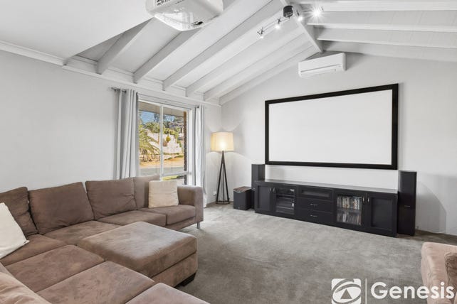 For quieter nights in, the dedicated home theatre is ready for movie marathons! Complete with plush carpet, exposed beams in the pitched ceiling, and a quality Epson projector for a true cinema experience. Enjoy all the little luxuries in this home like smart lighting, where you can control the ambience of the space from your phone, the high-powered air conditioning split systems throughout keeping your home temperature controlled all year round, and a full security system, so everything runs smoothly and safely.