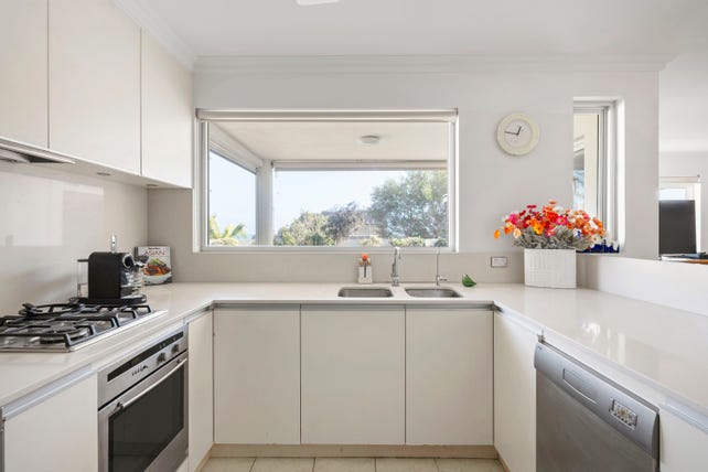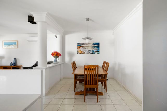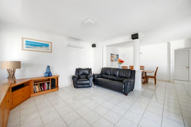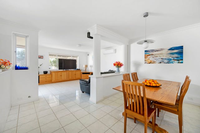 Outdoors, the backyard is huge and has lots of lawn for the kids and pets to run around on, as well as a pleasant glimpse of the glistening Indian Ocean in the distance. It is also overlooked by paved rear courtyard, verandah and patio areas, for further private entertaining.