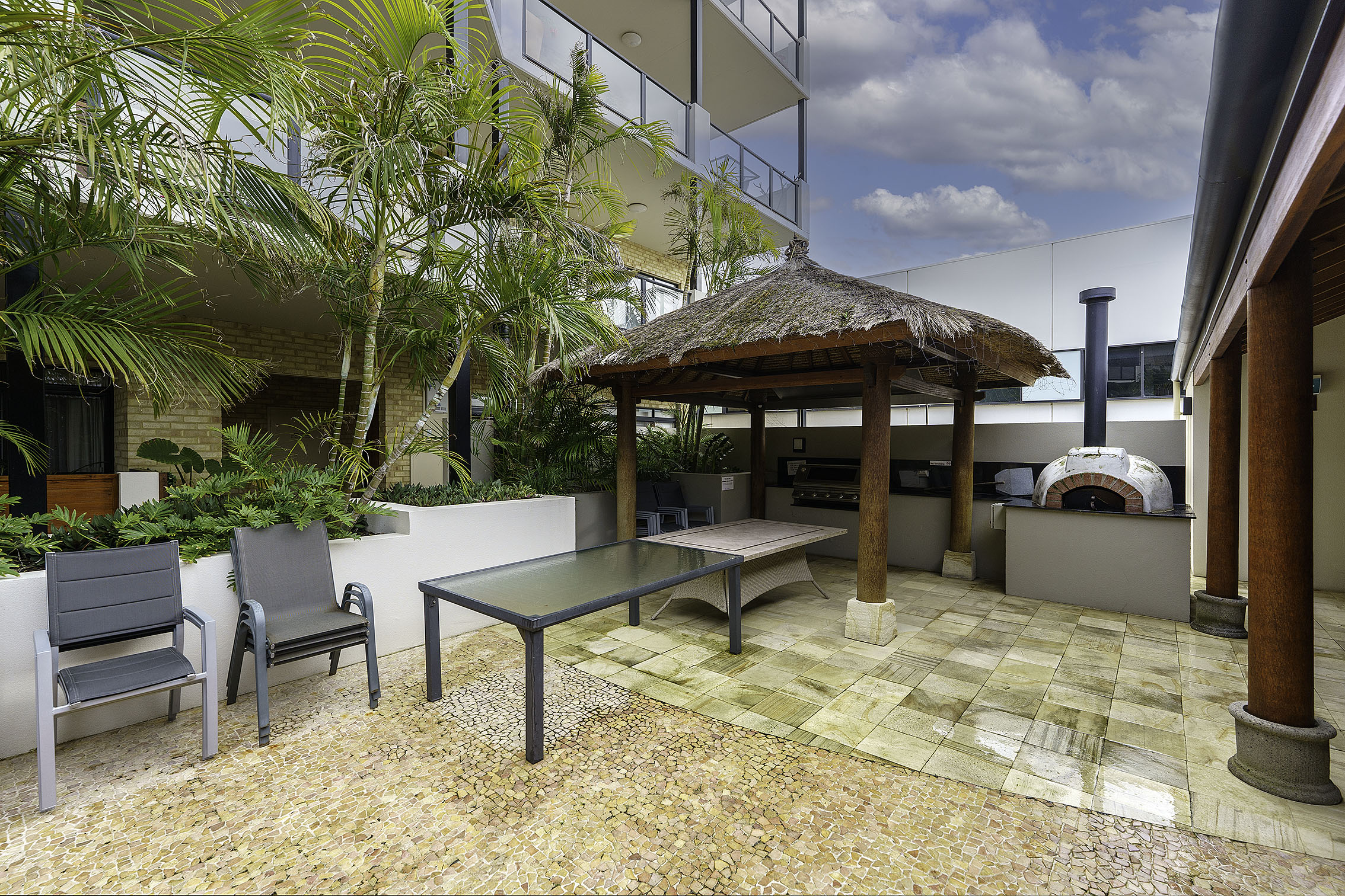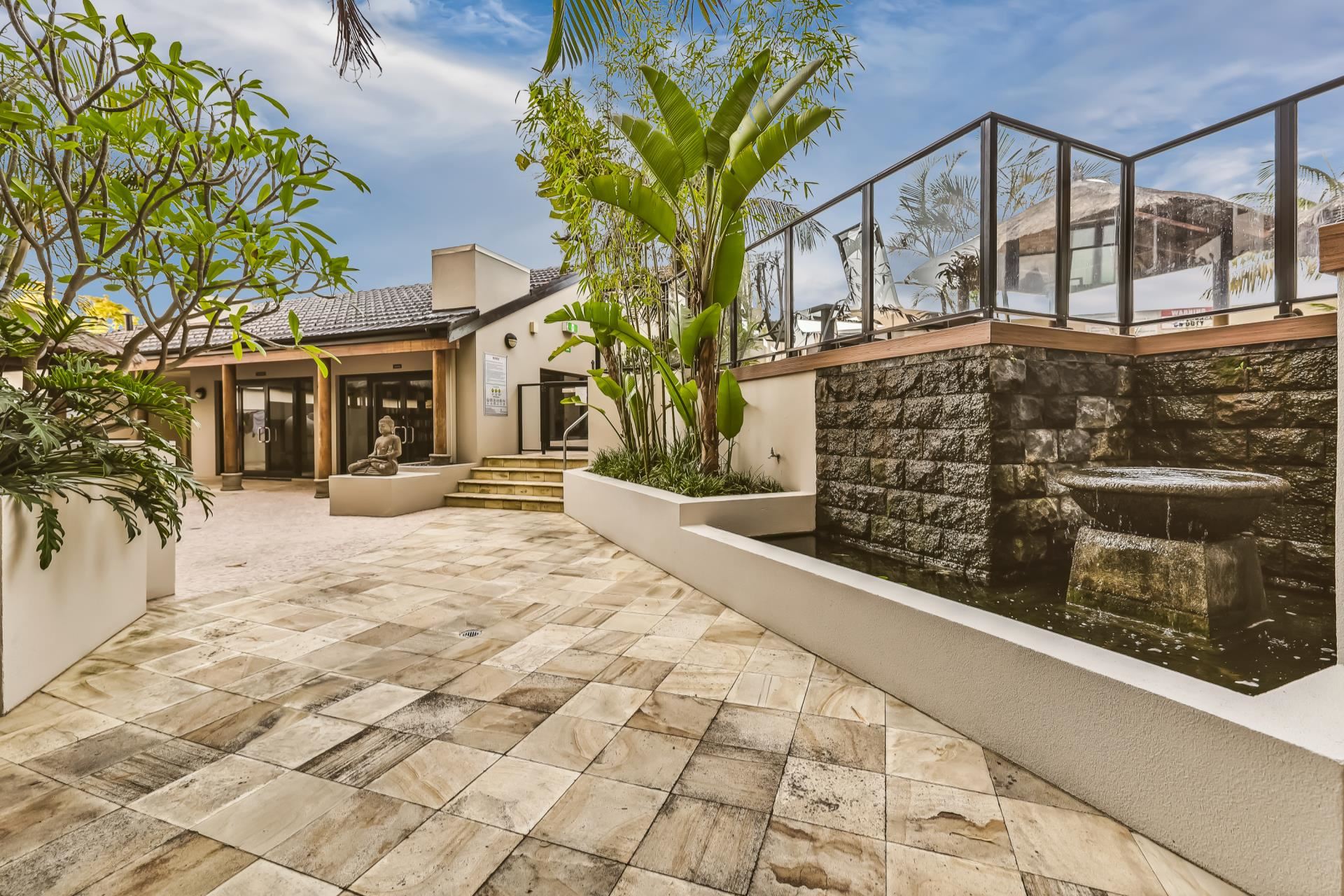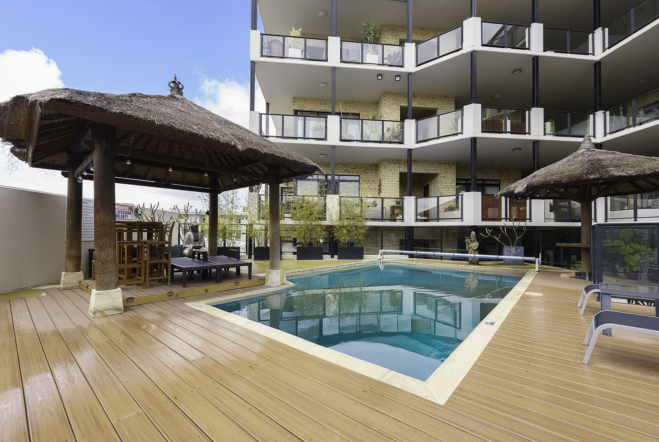 The living area comprises a large family and dining room with well appointed kitchen and breakfast bar, along with separate formal lounge and private balconies to the east and west. The property overlooks the CBD and Balinese themed meditation area. Other resort-style facilities include heated swimming pool, BBQ area with pizza oven, timber sun decks, gymnasium, sauna and tranquil gardens.