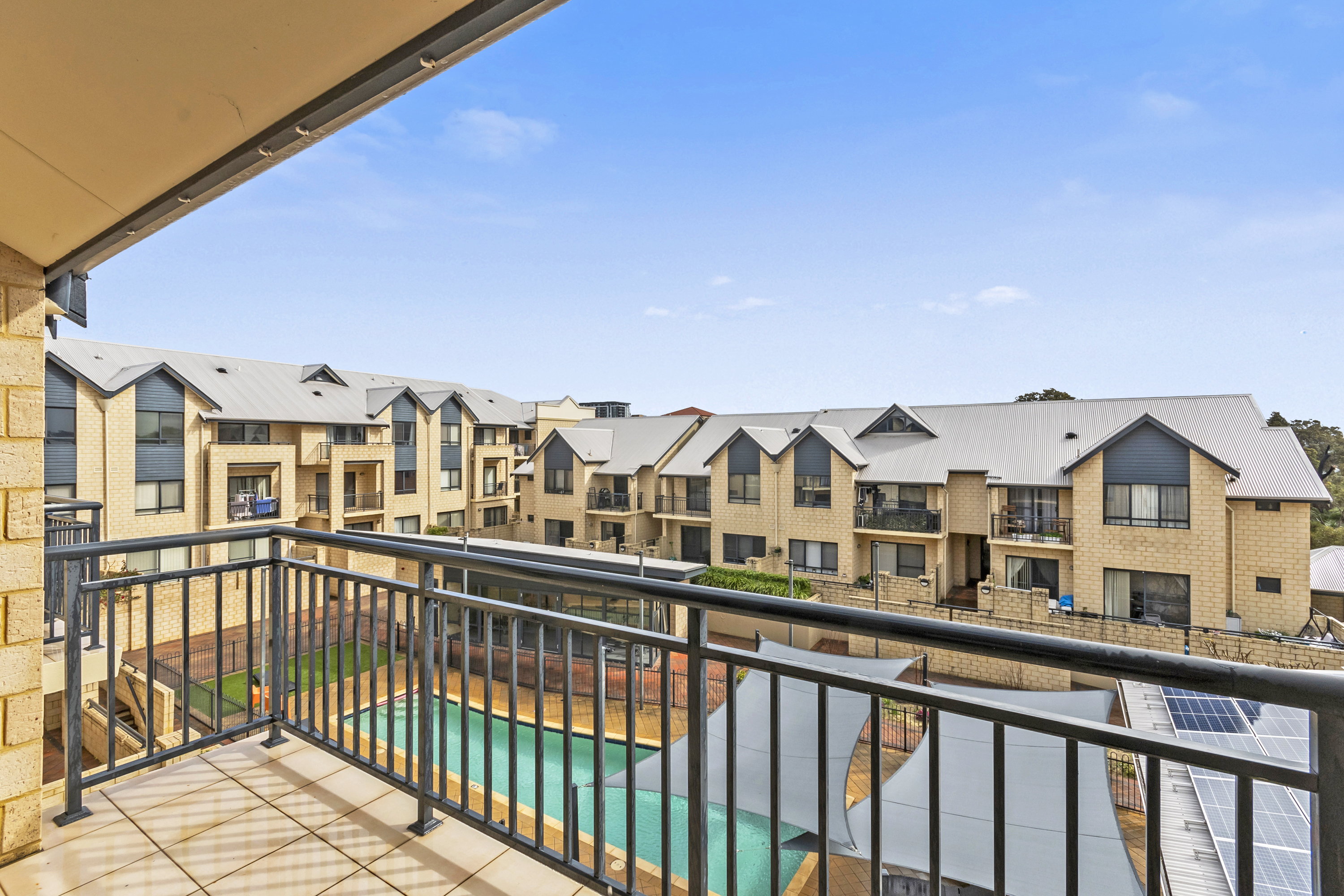 Top floor apartment with views What we love Welcome to the Waterbird Apartments complex, located high on the hill in the heart of CBD Joondalup, just a short walk to Lakeside Joondalup Shopping Centre, Edith Cowan University, Library, train station and many shops, bars and cafes, this is easy care living in style. This top floor, large and spacious 2 bedroom, 2 bathroom apartment is light and bright, featuring high ceilings and 2 balconies, it’s perfect for entertaining or just enjoy the views. The 2 balconies are something really special, one north facing with views over the swimming pool and to Wanneroo bushland or relax on the front balcony with south easterly views across to Lake Joondalup. There are 2 separate living areas and a corner kitchen offering generous workspace bench tops, dishwasher and plenty of cupboard space. The main bedroom has the added luxury of a soaring vaulted ceiling and atrium styled window letting in an abundance of light, plus a glass sliding door with access onto the front balcony. There is also your own private ensuite and double door mirrored robe. Bonus 2x secure car park bays, (many apartments in Joondalup only offer 1 car bay) and a generous storage room. Great future rental returns for investors or the ideal home to enjoy easy care living with sunset vista views after a swim in the pool.