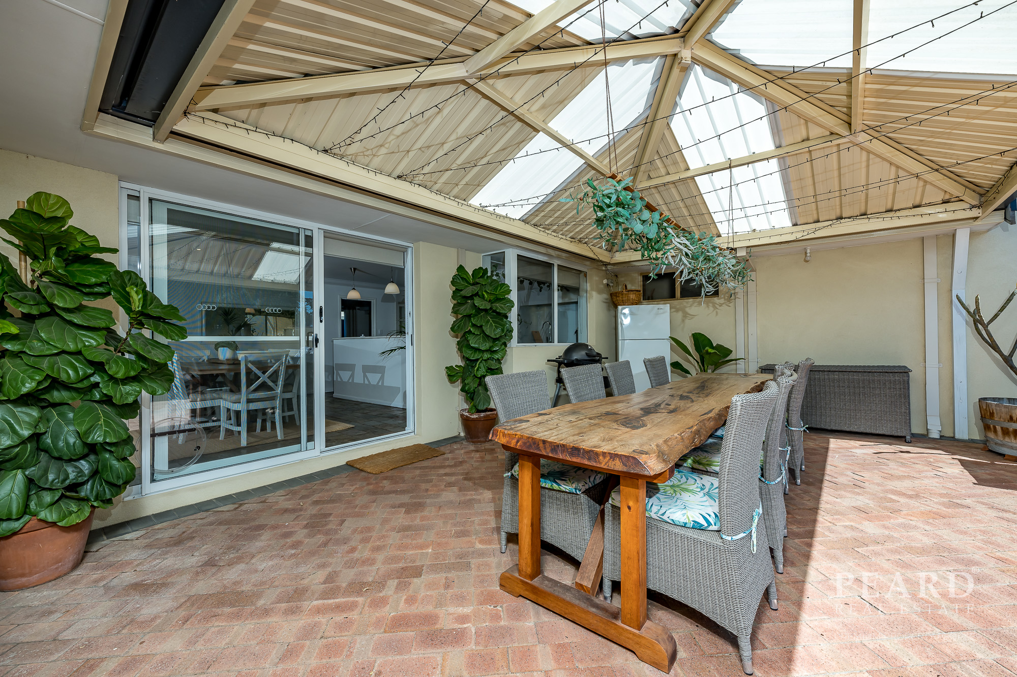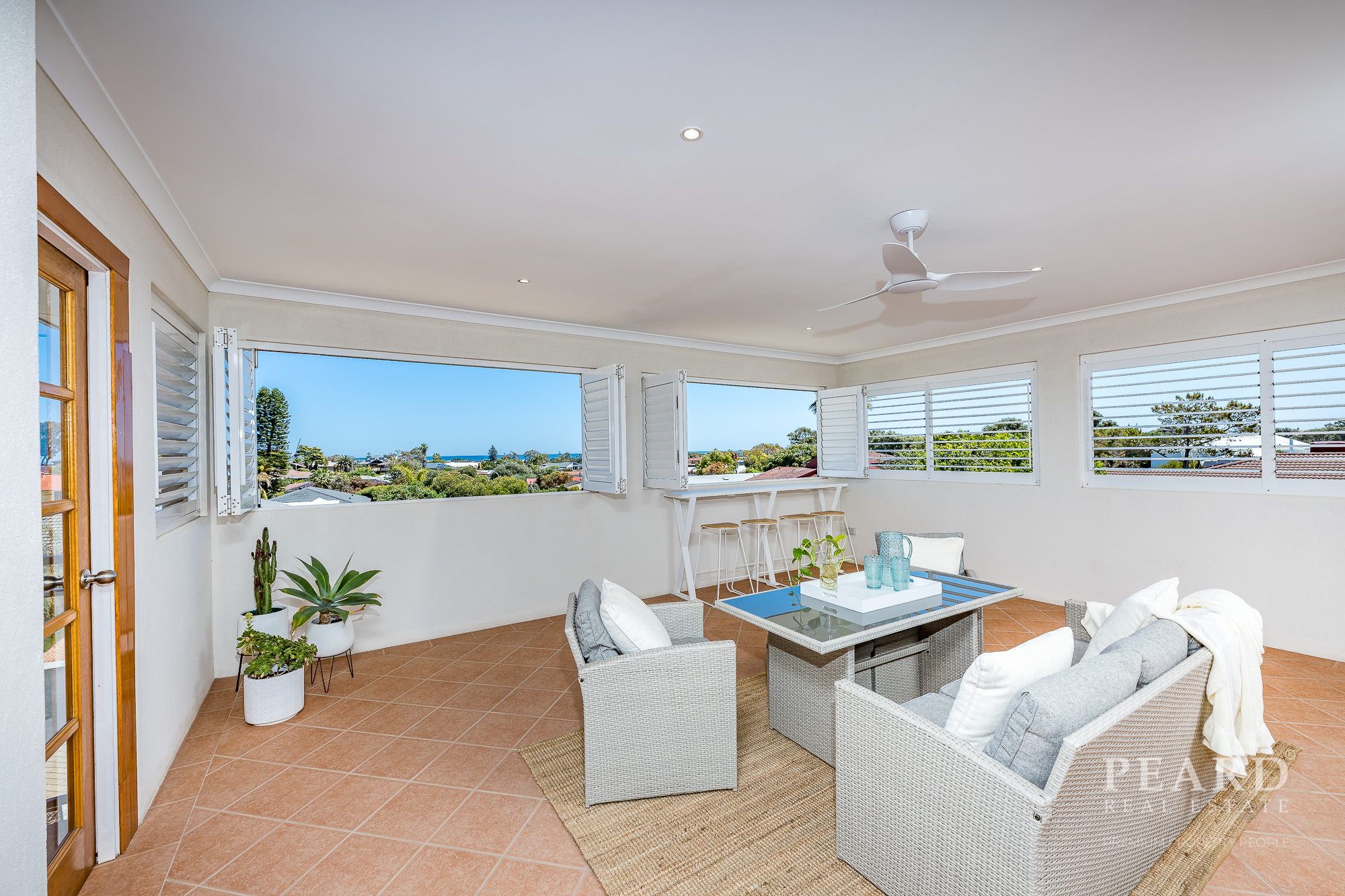 Welcomed by a stunning enclosed alfresco area, plantation shutters open to unveil stunning ocean views. It's the perfect setting to watch the day fade into evening, enjoying spectacular sunsets and coastal vistas.