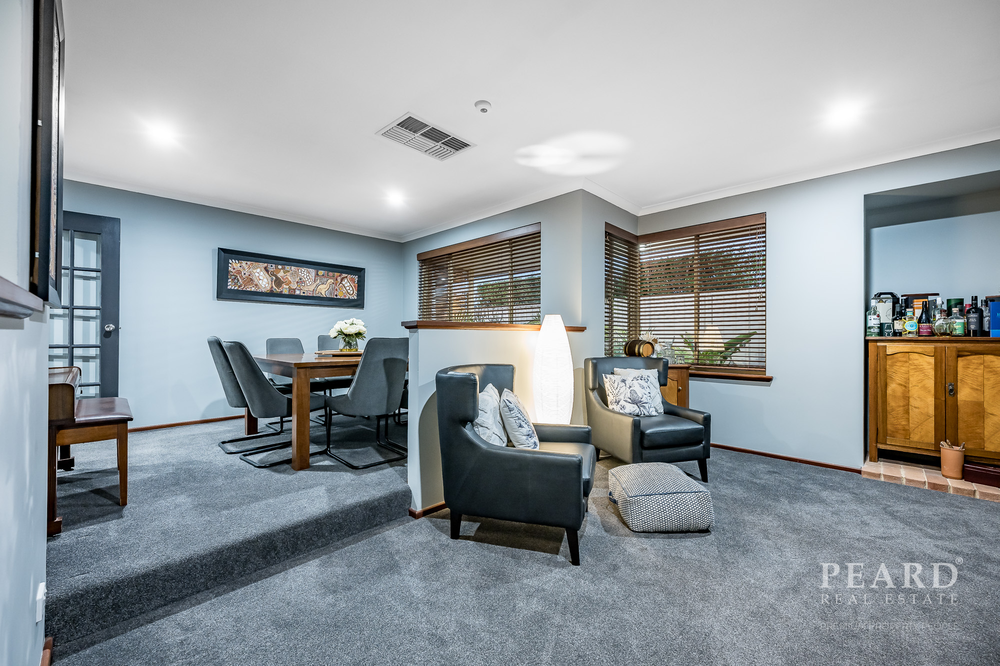 Downstairs, a sunken formal lounge room is reserved for those special occasions, much like the large carpeted formal dining room that overlooks it.