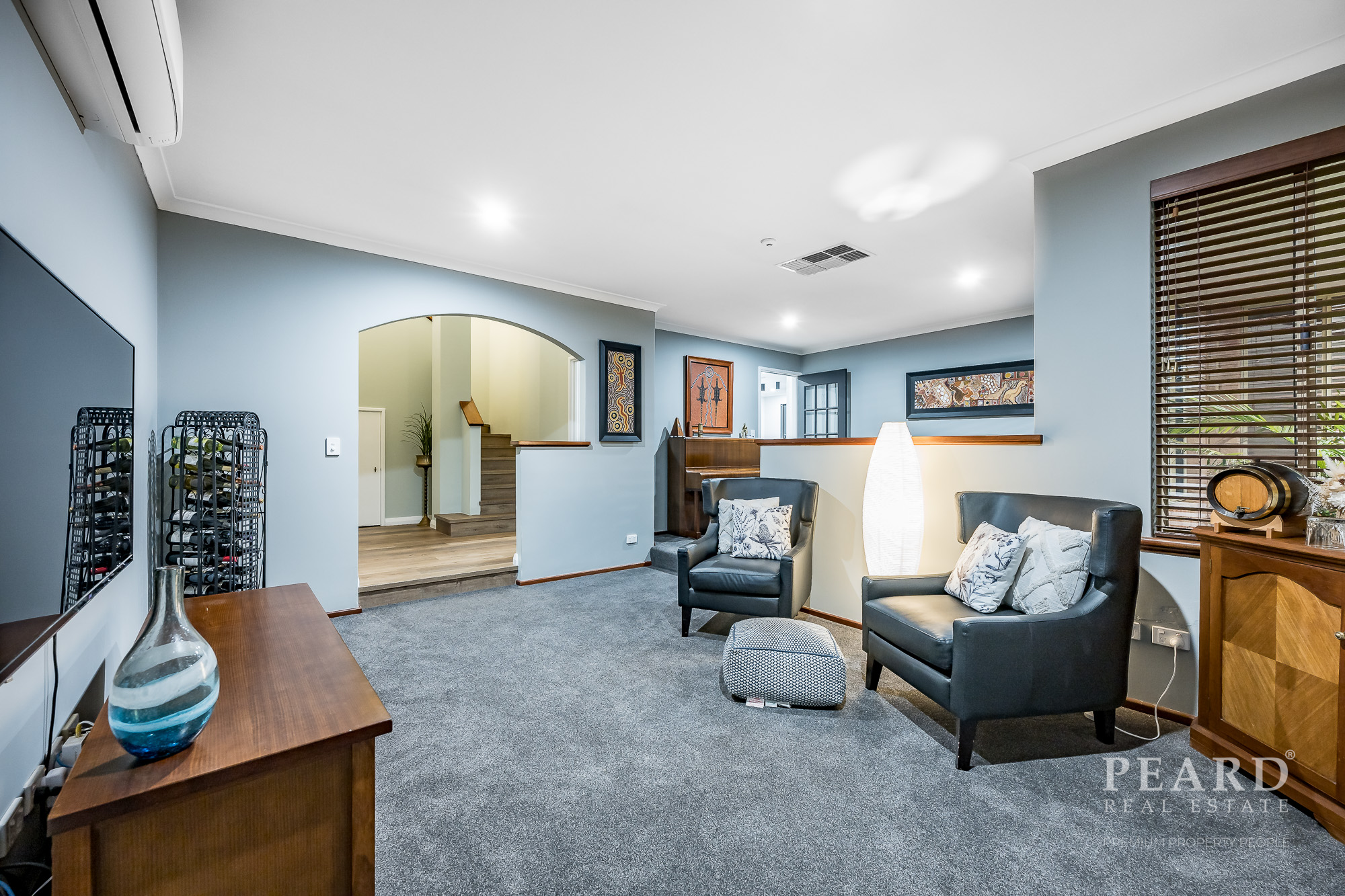 A versatile activity room adjacent to the bedrooms is great for kids and has its own split-system air-conditioner, lots of power points, three doors of cupboard storage and access out to the side patio. A linen press, an under-stair storeroom and a separate laundry with a powder room, under-bench storage and access out to the side patio and lawn area complete the picture downstairs.