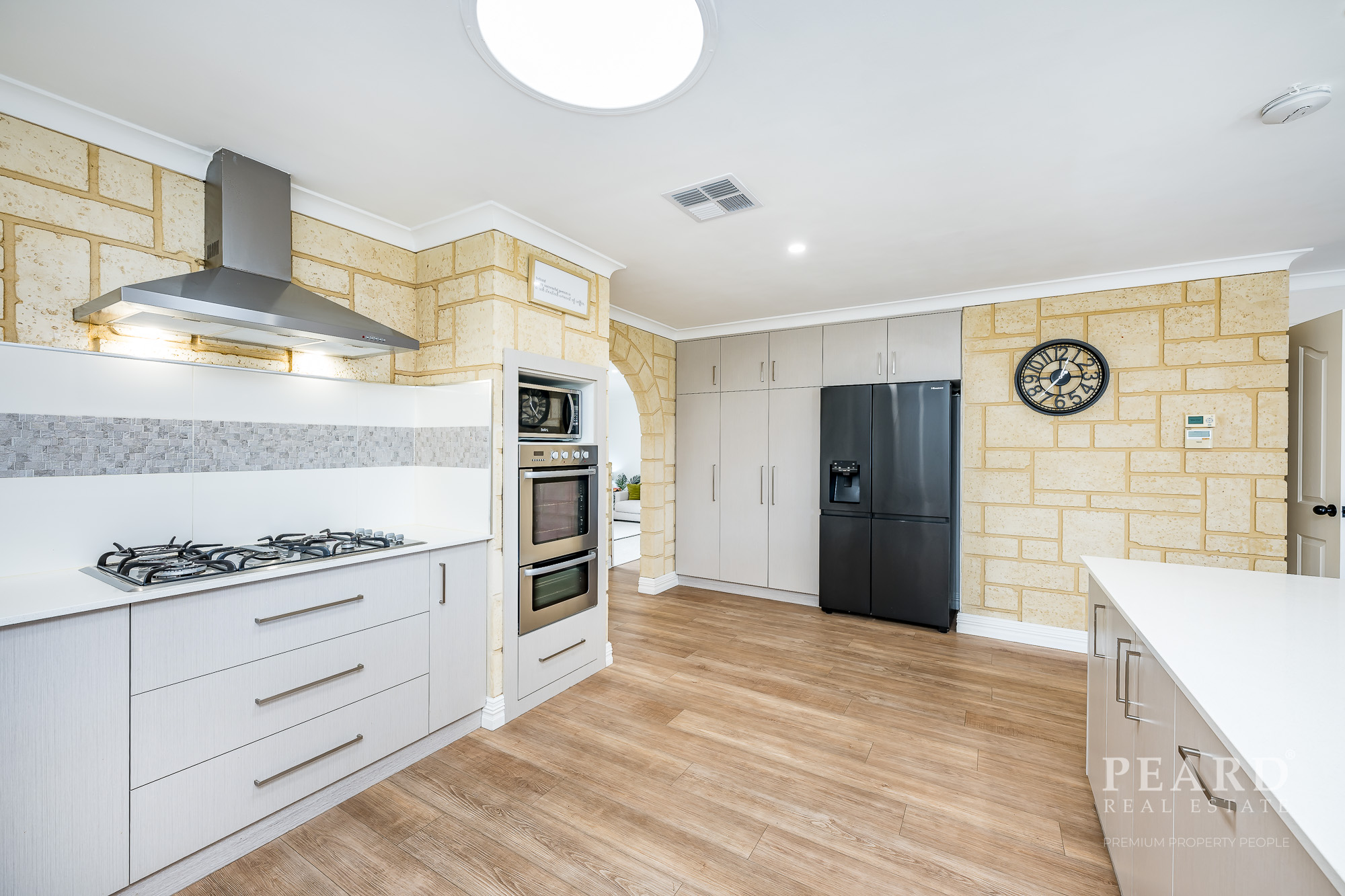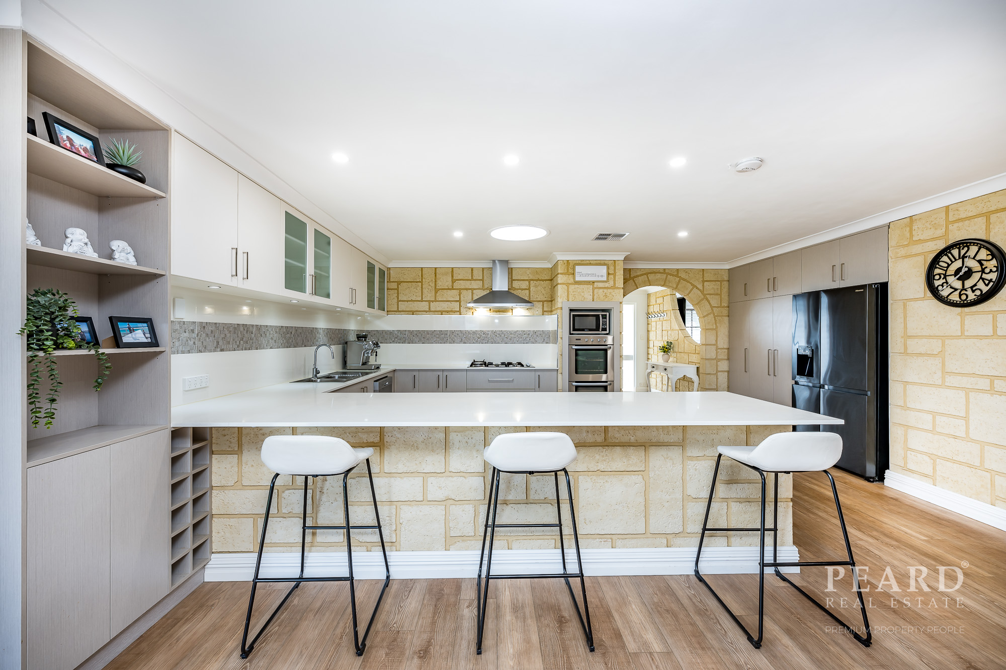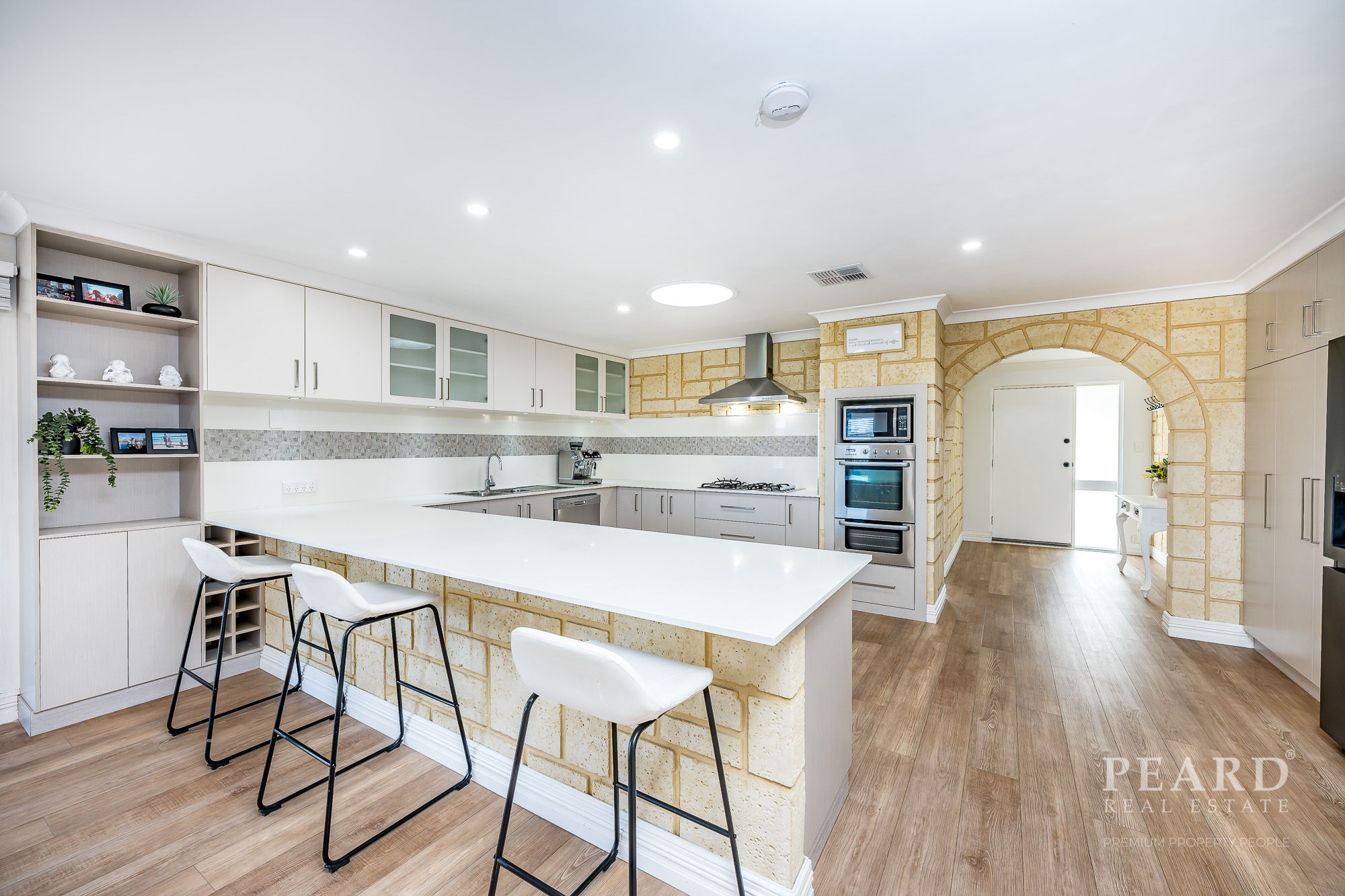 Quality renovated kitchen, gas hob, wall oven, dishwasher, fridge recess, pantry and breakfast bar -