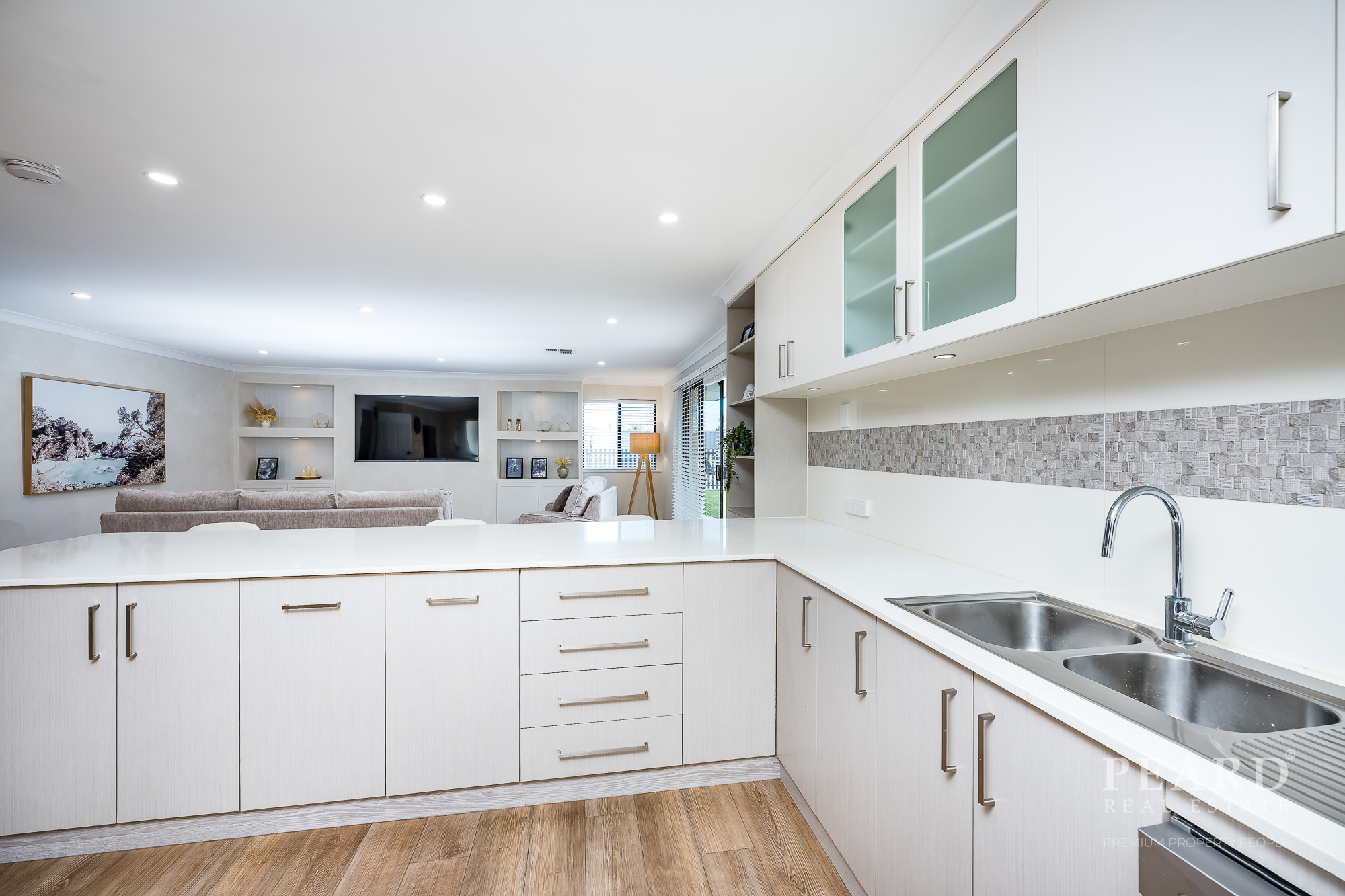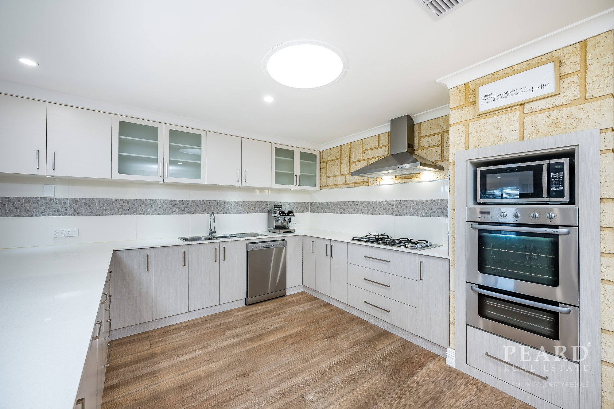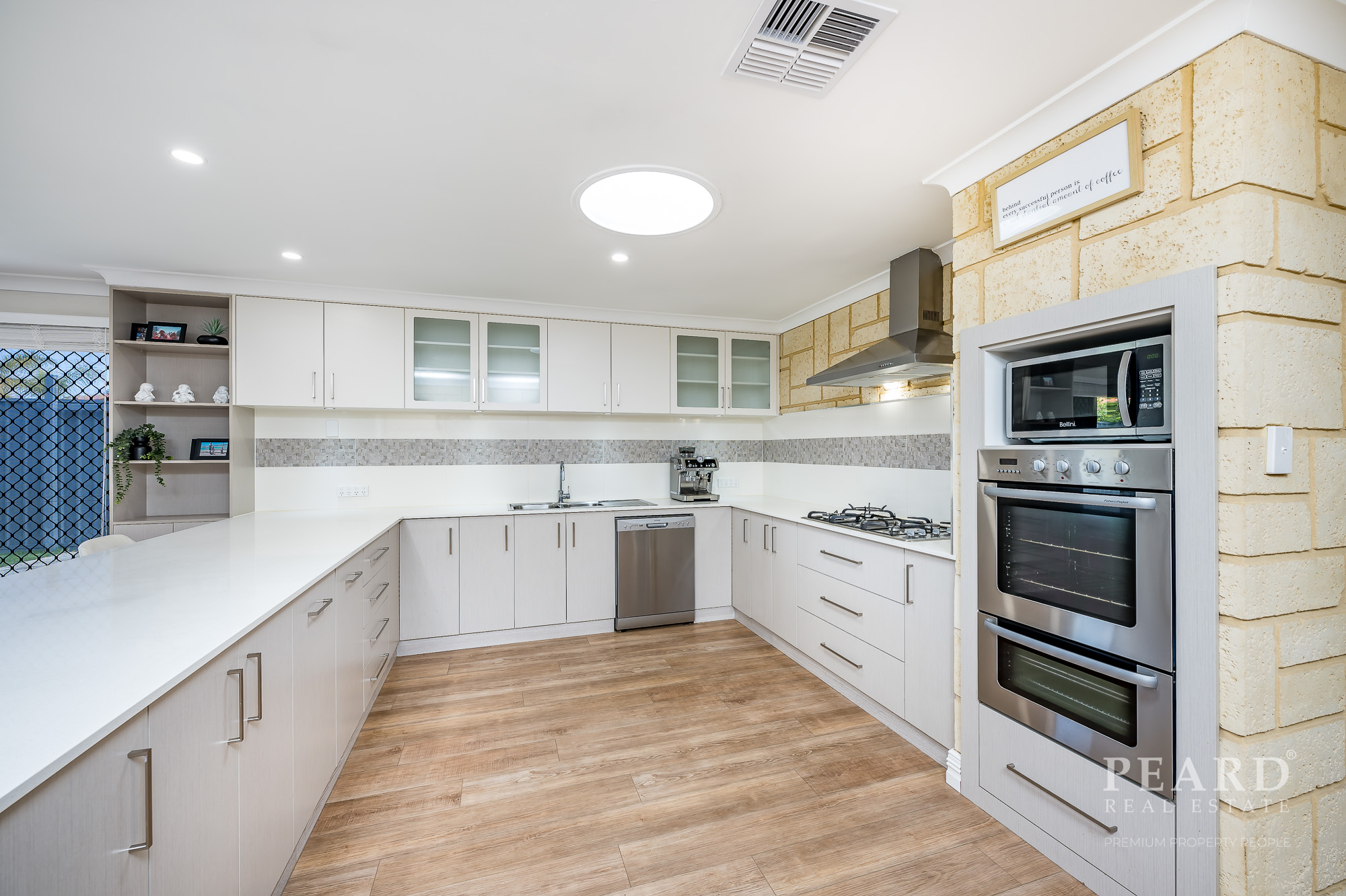 Quality renovated kitchen, gas hob, wall oven, dishwasher, fridge recess, pantry and breakfast bar -