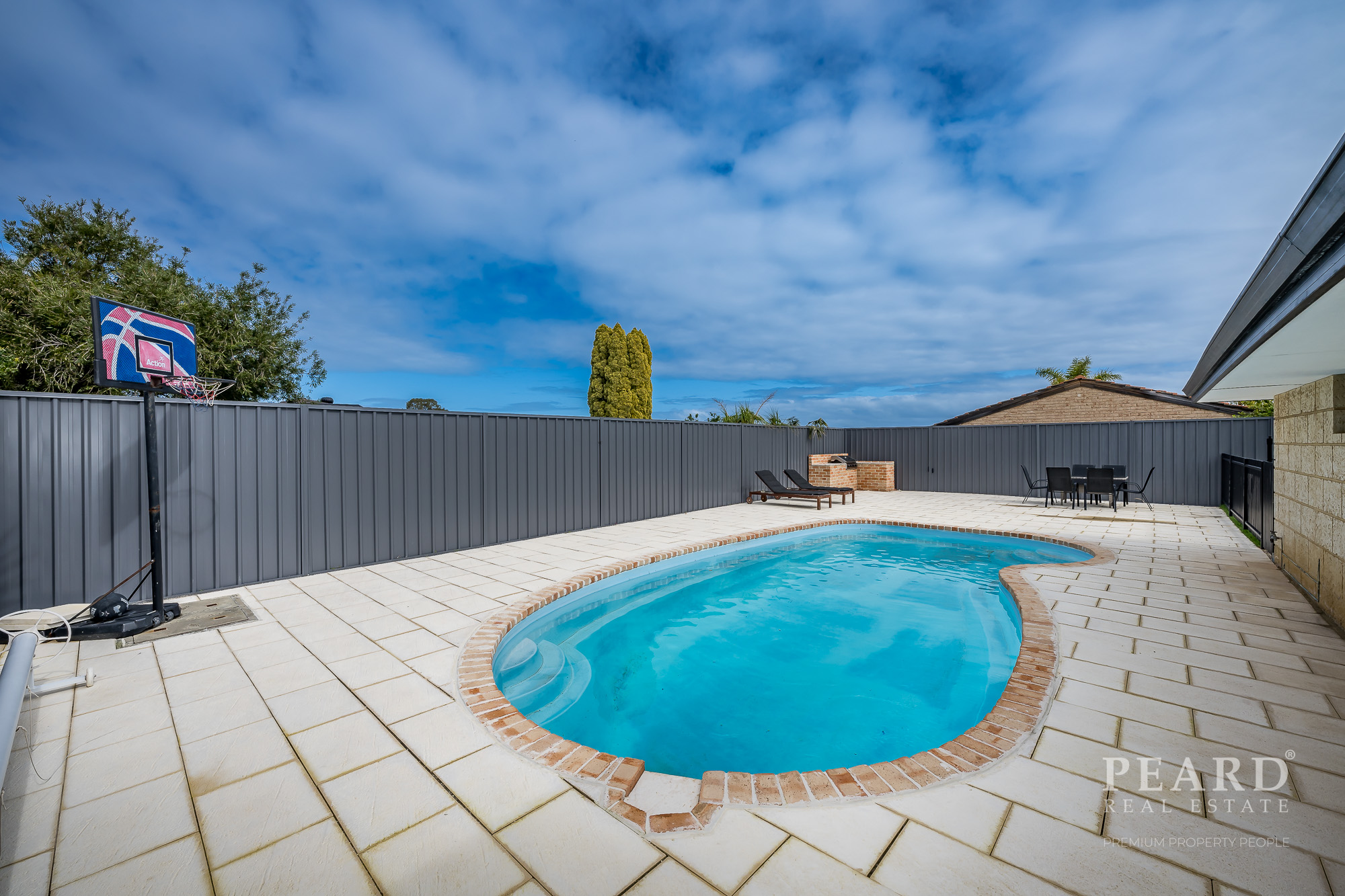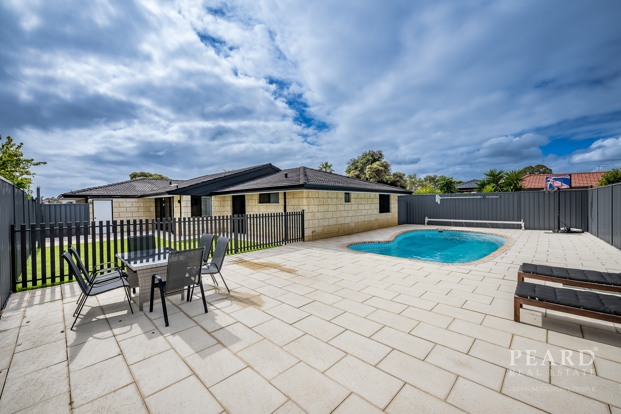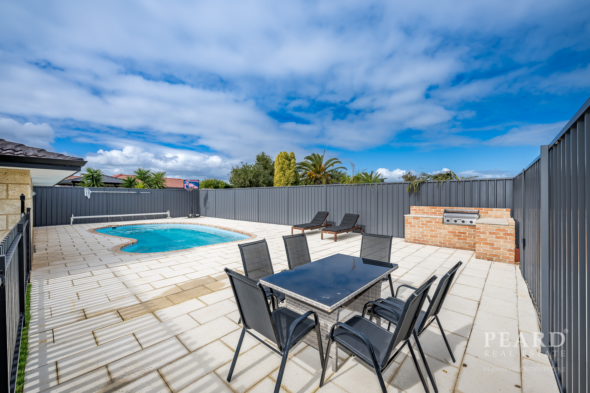 Good size back yard providing a beautiful pool area -