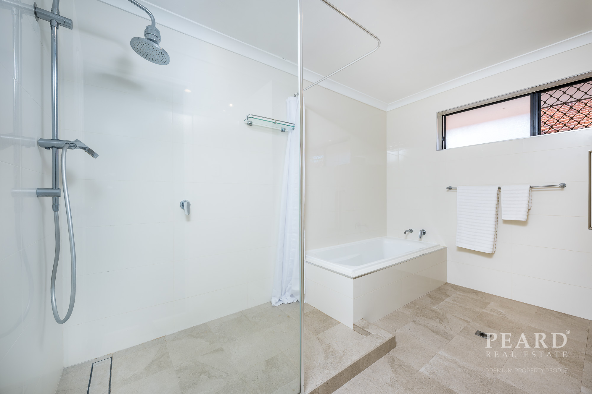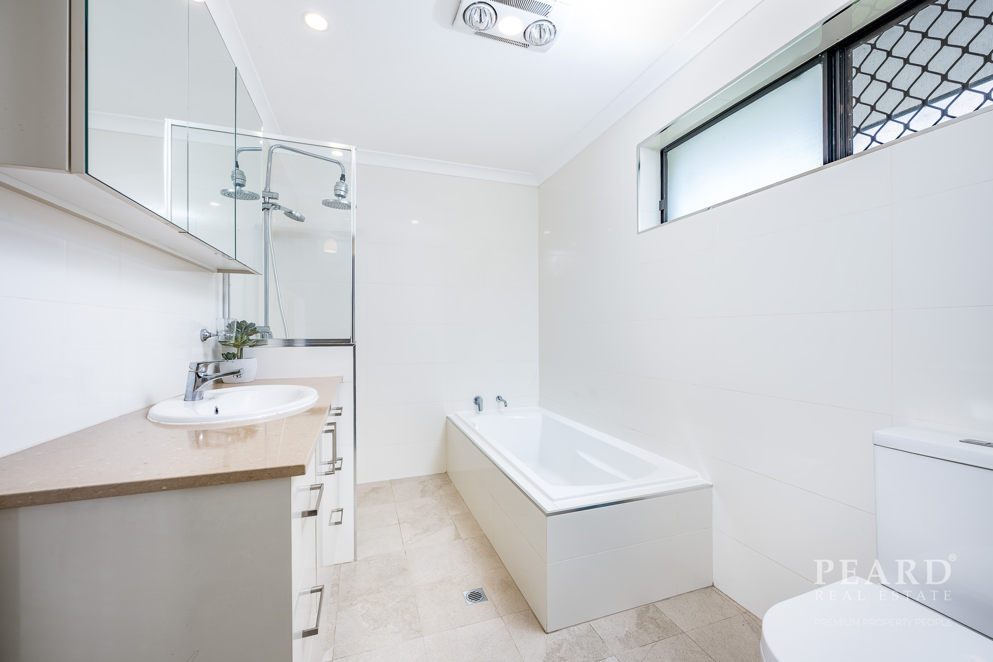 Large master bedroom with walk in robe, generous modern en-suite which includes a bath, dual rain/handheld shower & vanity and WC -