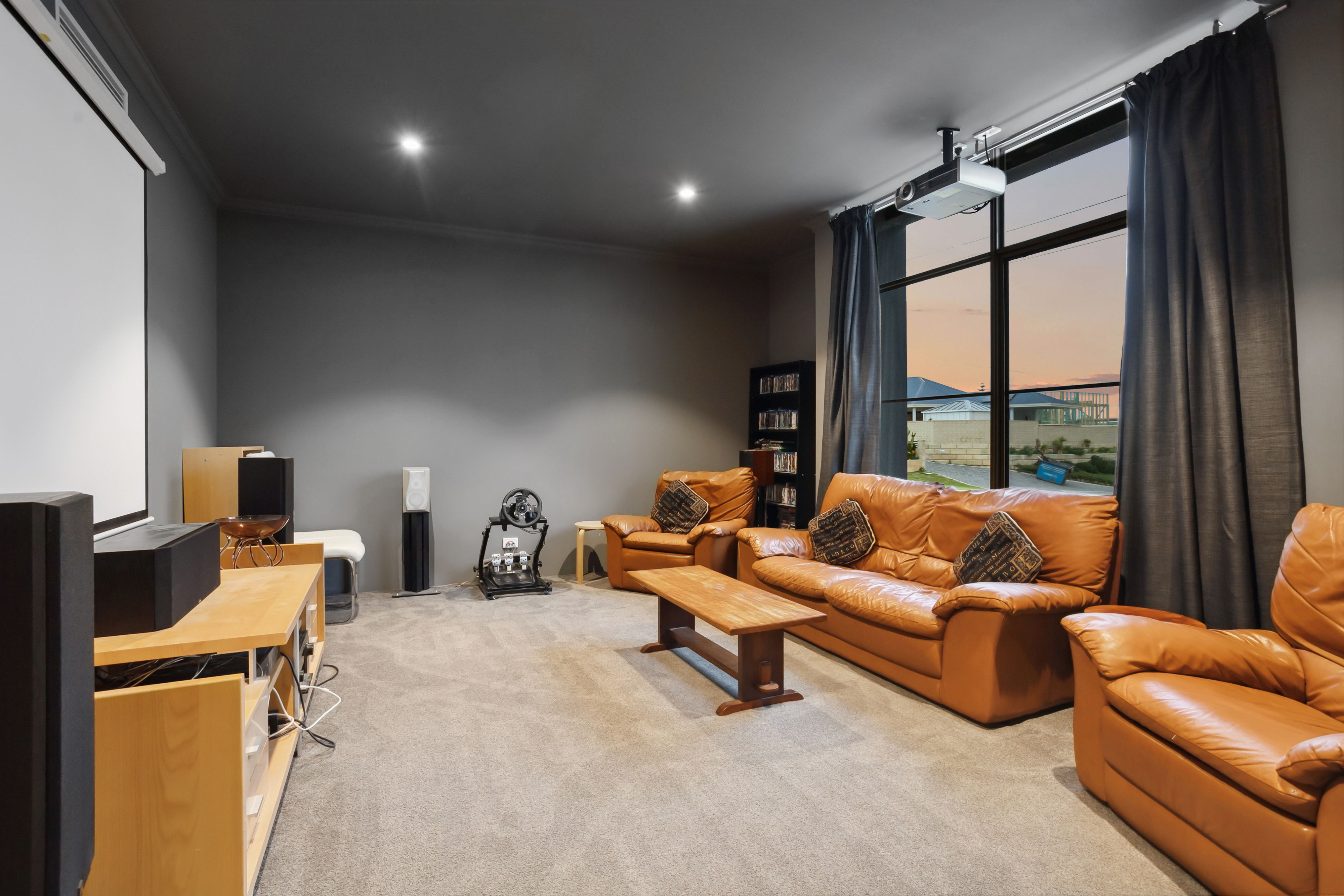 WHY YOU SHOULD BUY ME: • A dream backyard setting with a large sparkling below-ground mineral swimming pool and water-feature provisions, overlooked by a fabulous alfresco-entertaining area – comprising of sliding-stacker doors and water, gas, plumbing and sunk provisions of its own, ready for an outdoor kitchen • Double doors leading into a huge open-plan family, dining and kitchen area downstairs, featuring timber-look floor tiles, a pleasant north-facing aspect, a built-in computer nook/drop zone, poolside alfresco access, stone bench tops, mirrored splashbacks, an island breakfast bar, Siemens dishwasher, Induction-cooktop, convection-oven and convection-microwave-oven appliances, a range hood, fridge plumbing and a scullery/butler’s pantry with an alfresco servery window to impress your guests • Full home theatre room on the ground level, with double privacy doors, a projector and a wall screen for the ultimate cinema-style experience • Large tiled home office – also downstairs • Carpeted upstairs retreat/living/activity area with a covered front balcony from where a sublime sea and tree-lined vista can be absorbed and the nearby waves can be heard • Carpeted upper-level bedrooms, inclusive of a king-sized master suite with a fan, ocean views of its own, a massive walk-in wardrobe and sumptuous fully-tiled ensuite • Remote-controlled double lock-up garage with a side storage area, a Fisher and Paykel dryer and internal shopper’s entry • A manual side-access gate off the property’s second street frontage, revealing access to the backyard for secure boat/caravan railer parking – plus extra verge parking space for up to three more vehicles