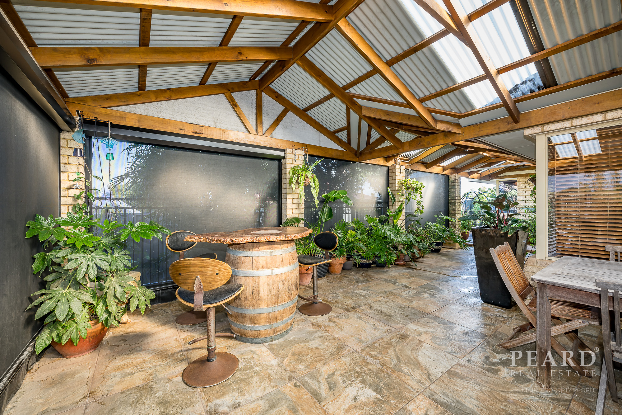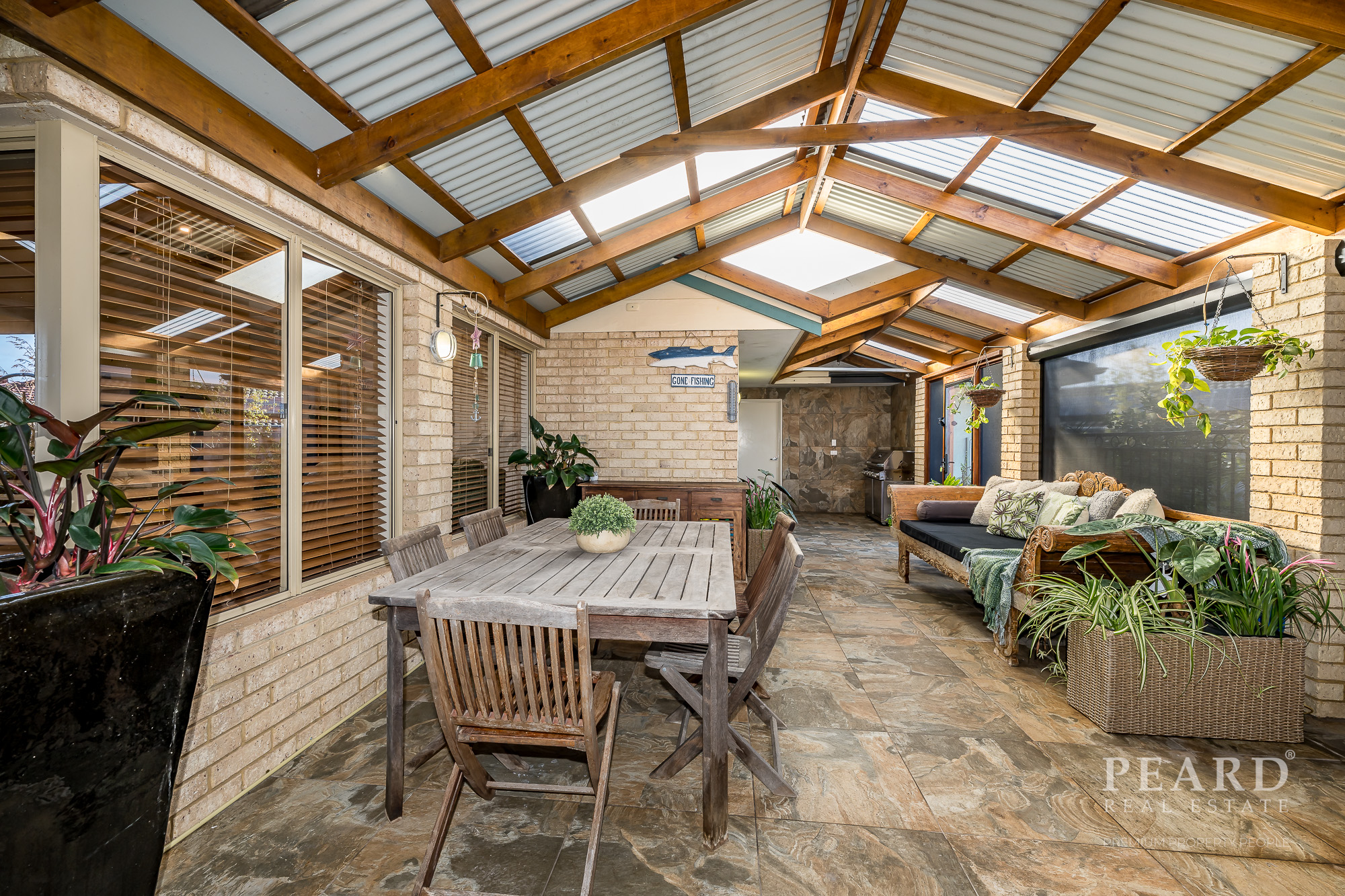 Step outside to the enclosed outdoor patio, ideal for all-season entertaining with its BBQ area, pitched roof, and lockable café blinds. Continue down to the swimming pool and decked lounge area, where the spacious backyard becomes the ultimate hangout spot, complete with an outdoor shower for rinsing off after a swim. Surrounded by reticulated gardens and lush greenery, relish in the privacy and tranquility of this outdoor retreat.
