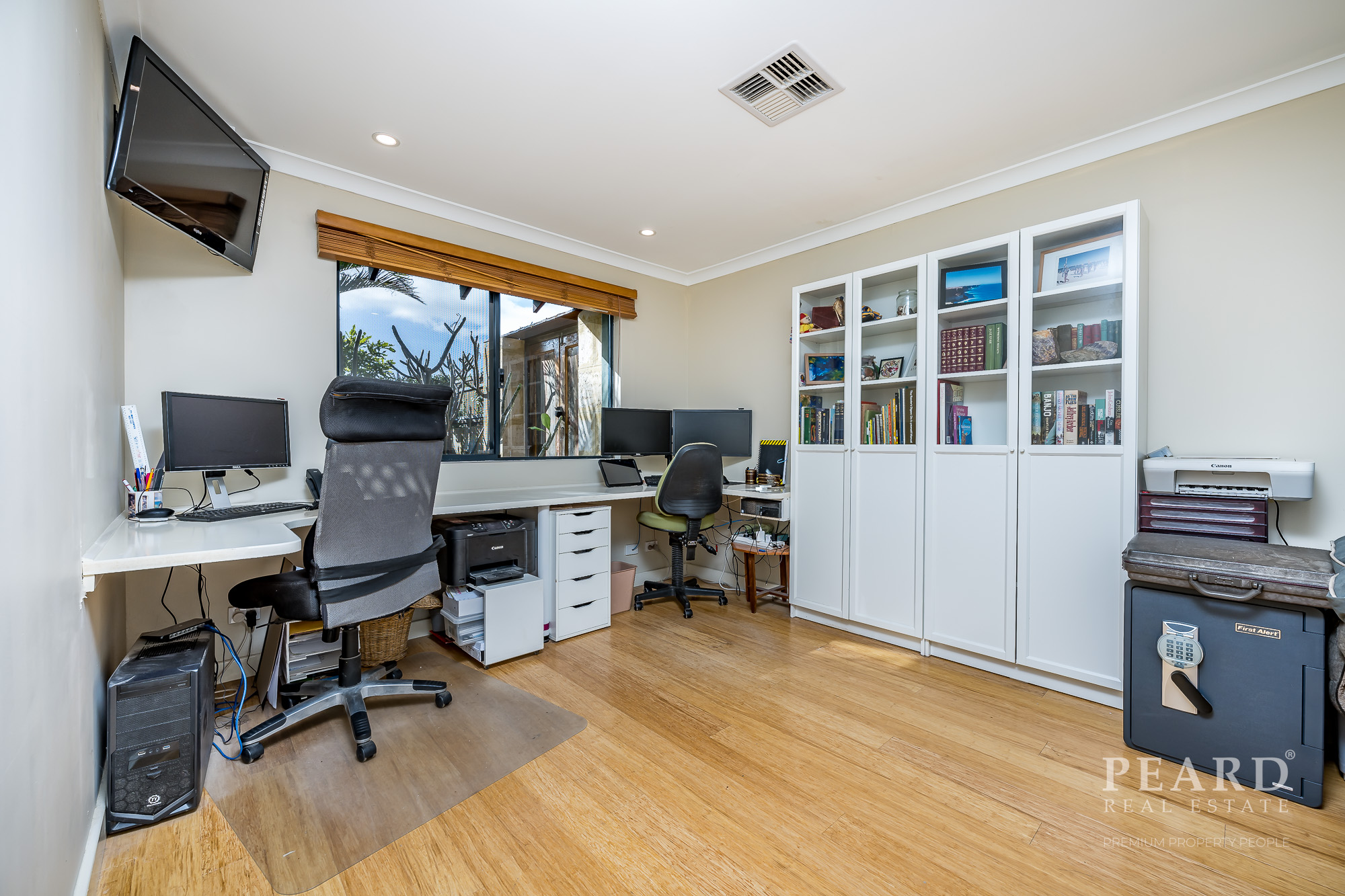 Other property features include but not limited to: - Spacious 860sqm block - Double garage - Ample car parking on large driveway and verge - Additional storage space/home gym set up in garage - Stairwell to fitted out attic space, with carpet flooring, ample storage space and air-conditioning - Secondary kitchen and combined laundry with gas cooktop, rangehood, tiled splashback, generous storage and stainless steel sink - Spacious study/home office with built-in desk