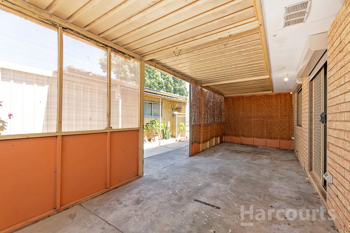 The outside is larger than you would expect, with plenty of useful spaces. Starting with the semi-enclosed alfresco, fantastic for entertaining both summer and winter and roller shutters on all major exterior windows.