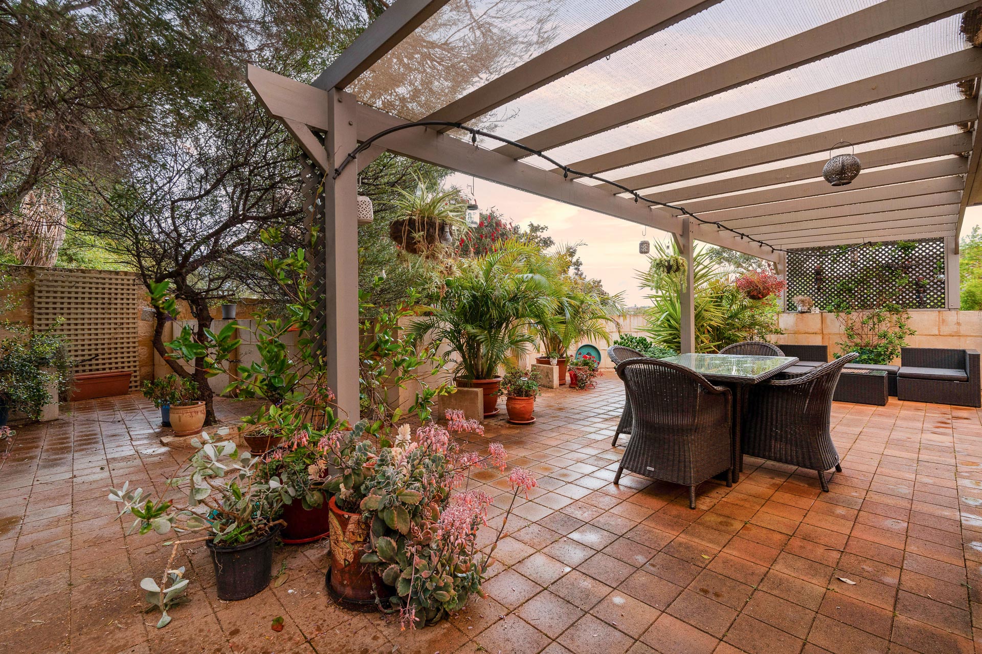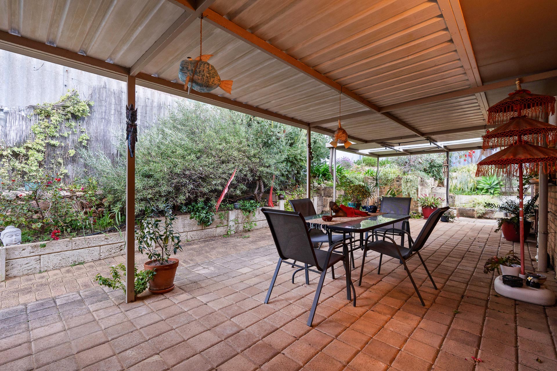 The home boasts not one, but two fantastic outdoor entertaining spaces: A shady front courtyard with pergola plus a rear courtyard with a covered patio, offering plenty of options to relax or entertain guests.