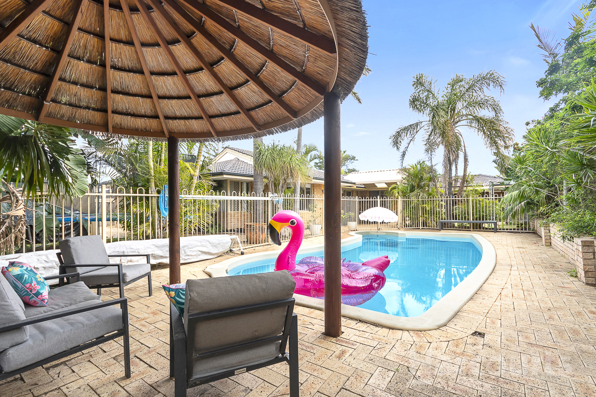 Here are just some of the features of this beautiful home: • Spacious master suite with air-conditioning, walk-in robe, and private ensuite • Versatile front lounge and formal dining area for extra living space • Newly renovated kitchen with stone waterfall benchtops, 900mm stove, and ample storage • Butler's pantry providing additional storage and functionality to the kitchen • Open-plan, air-conditioned main living area with contemporary tiles throughout • Large games room with raked ceilings, sliding doors, and triple storage cupboard • Three additional bedrooms with built-in robes, plus a separate study or fifth bedroom • Stylishly renovated laundry and nearby main bathroom with separate toilet • Inviting outdoor patio and sparkling pool with thatched-roof cabana • Bore reticulation ensures the established gardens and lawn stay lush all year round • 6.6kw of Solar Panels for maximum energy efficiency and money saving bills • Two grassed areas, two storage sheds, and potential ocean views with a second floor (subject to approvals) • Double carport with remote garage and drive-through access to the rear yard