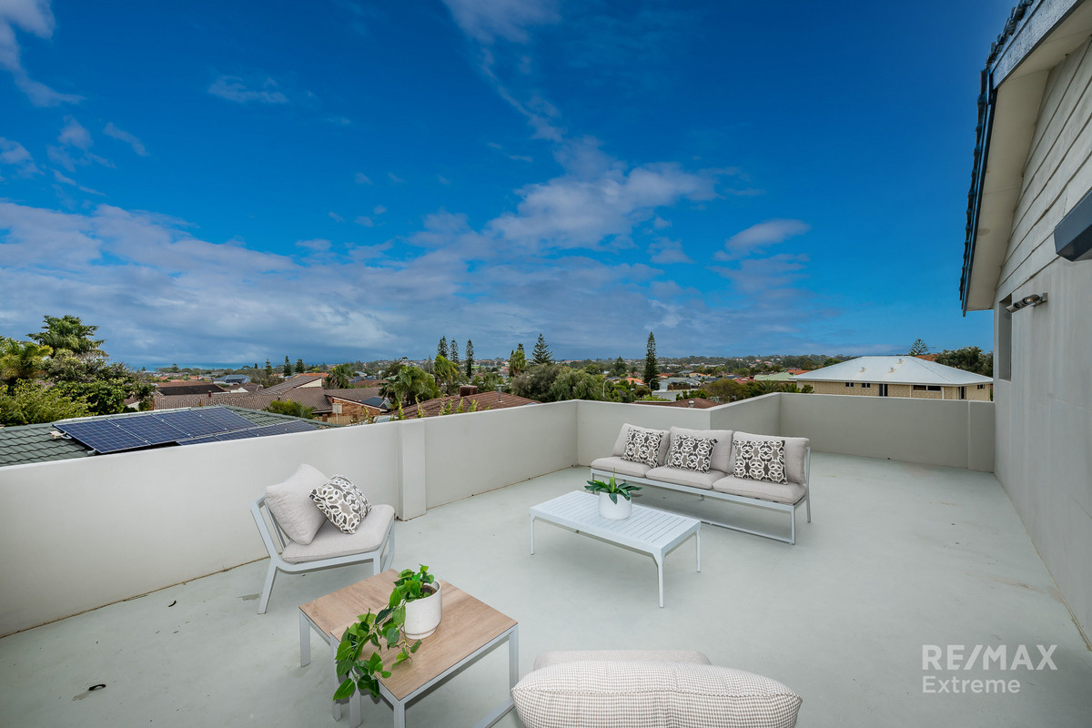 Offering two levels of open plan living, this thoughtful floor plan allows for separation for all members of the family. Featuring four bedrooms, two bathrooms, renovated chef's kitchen, family living and dining, theatre room with kitchenette and multiple options for your outdoor entertaining needs, including an expansive covered patio and spacious balcony to take in the ocean panorama, views to Rottnest and the forever changing vistas. This home perfectly caters to the growing family and those who cherish relaxation and enjoyment.
