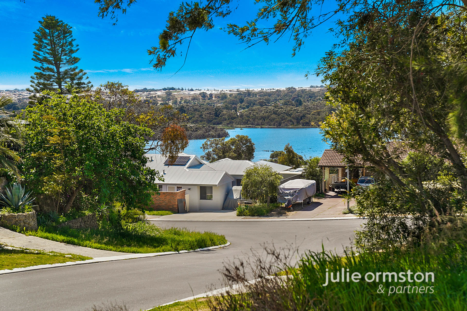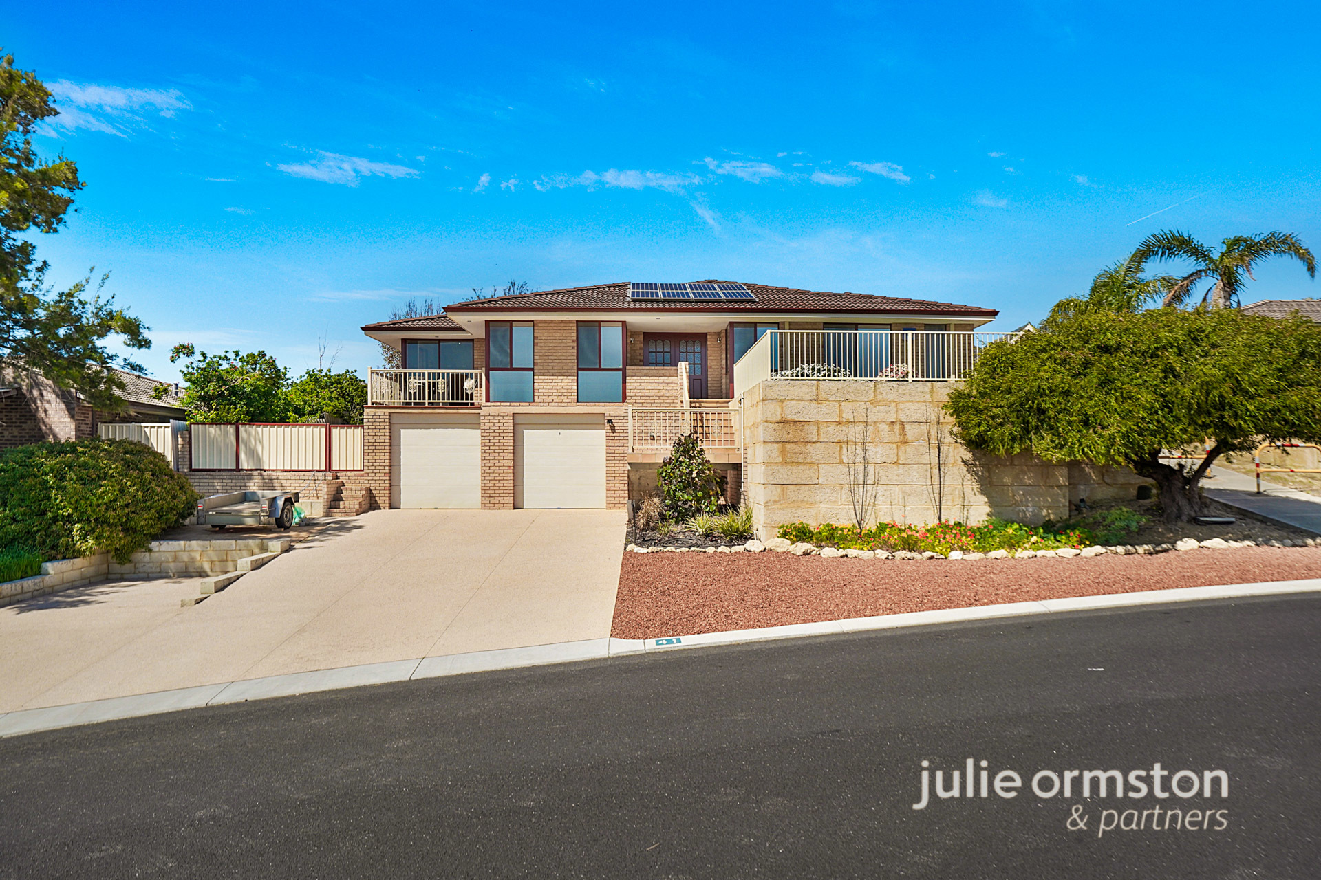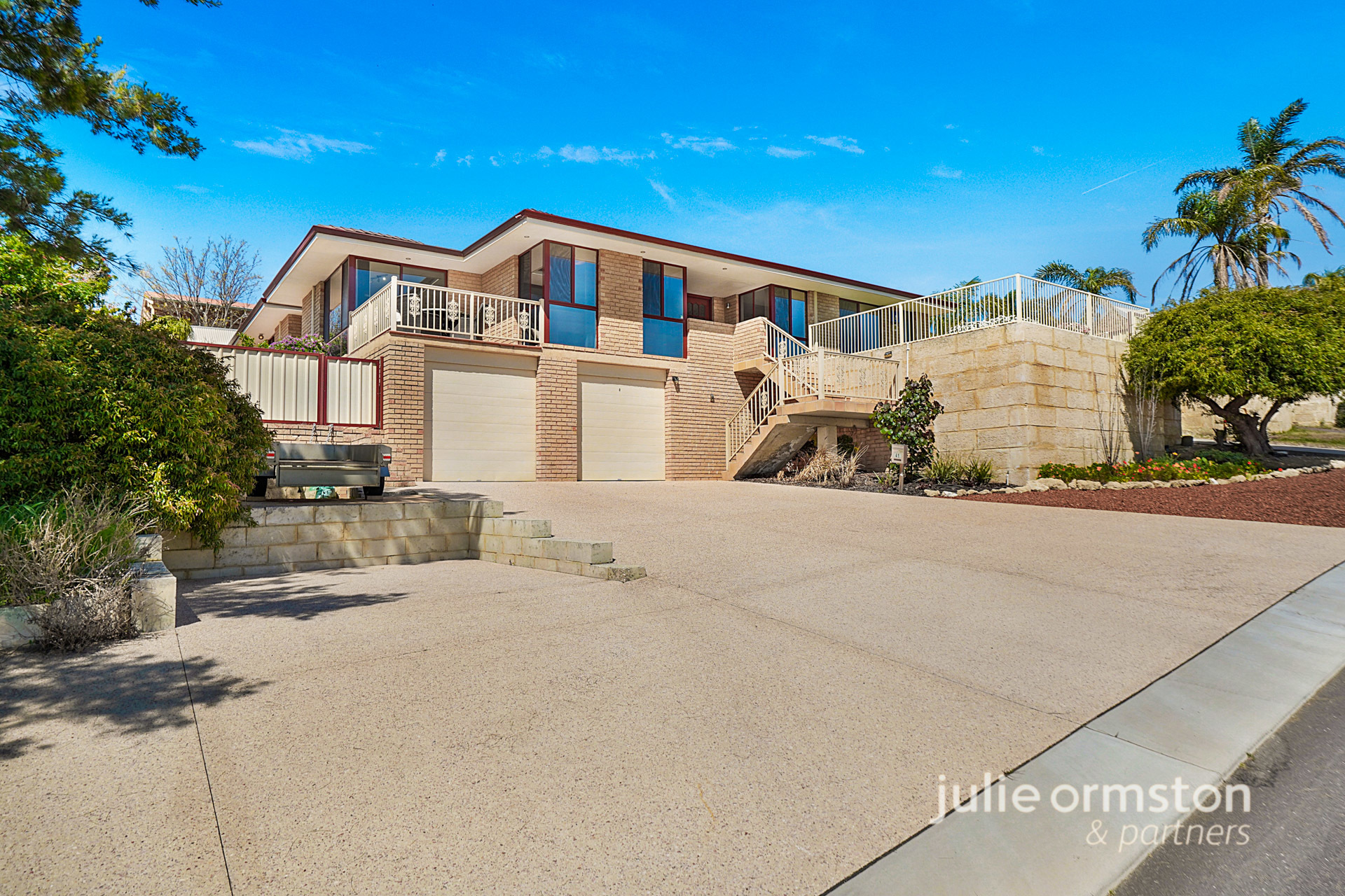 - Sitting high overlooking the street and towards Lake Joondalup, this home features a commanding façade, with plenty of off street parking for cars and trailers, and a wide liquid limestone driveway that leads to an oversized double garage. After making your way up the flight of stairs, you'll be rewarded with sublime views over the lake, and discover a generous grassed area that's perfect for sitting back and appreciating the beautiful view from.