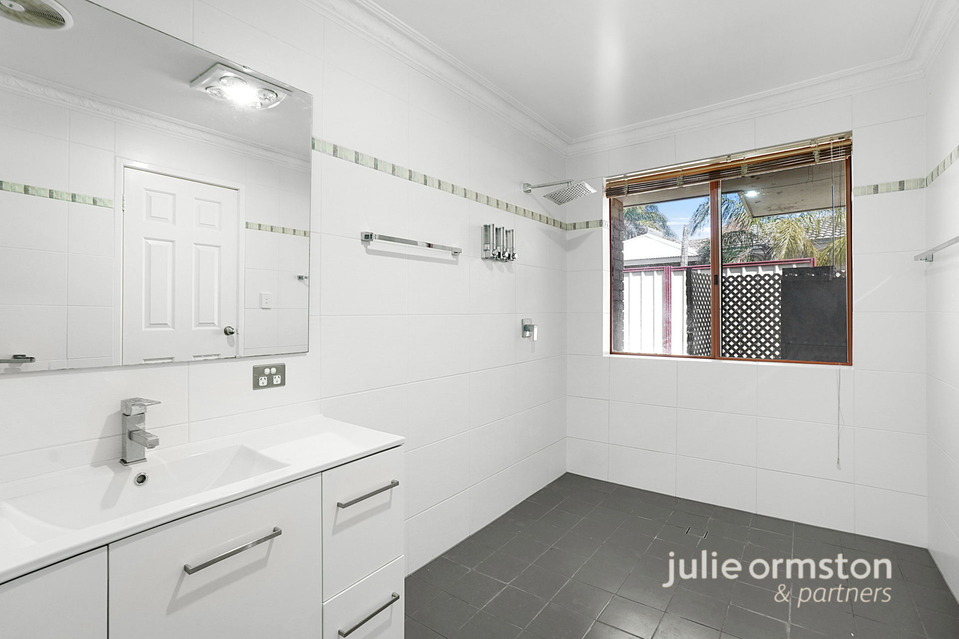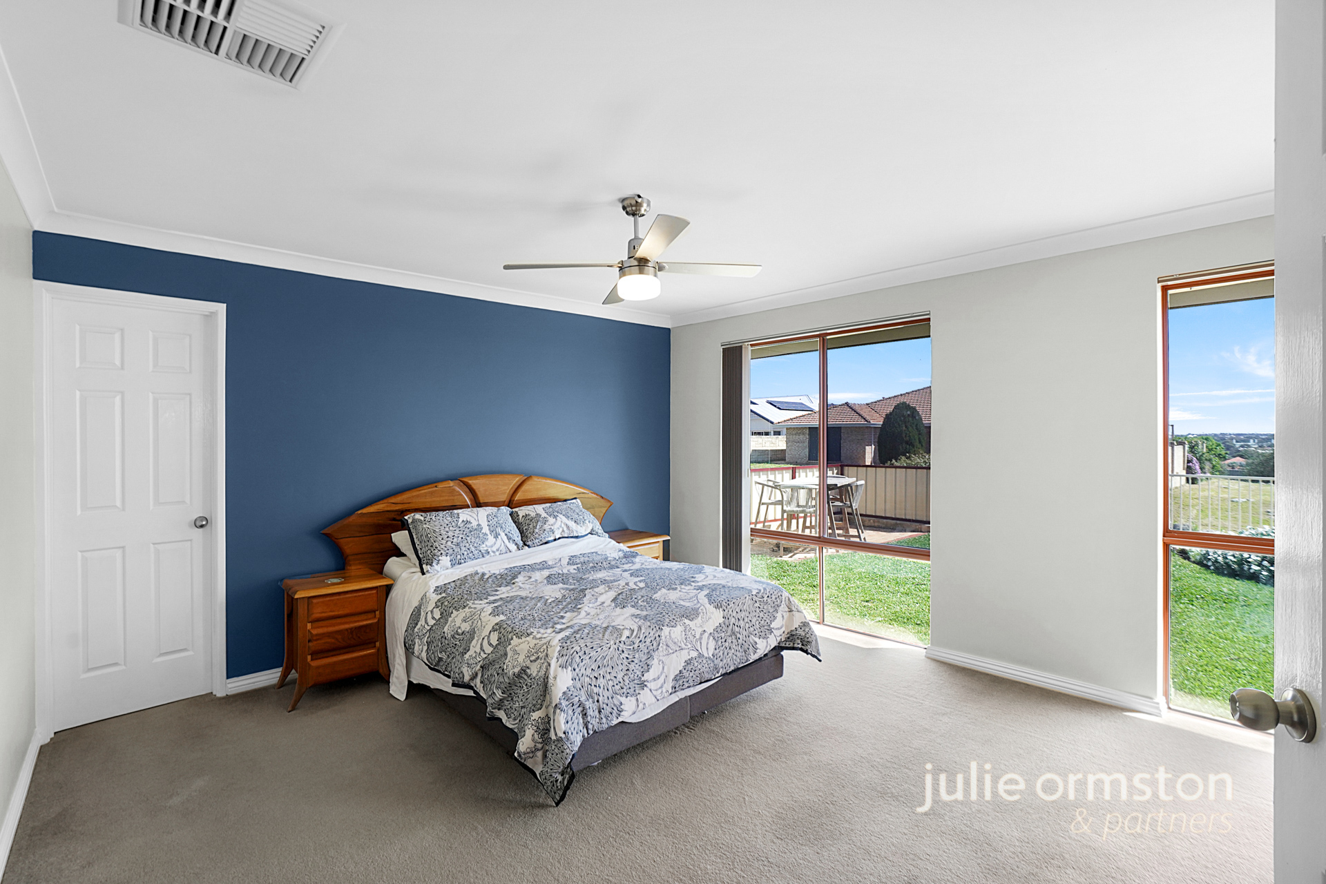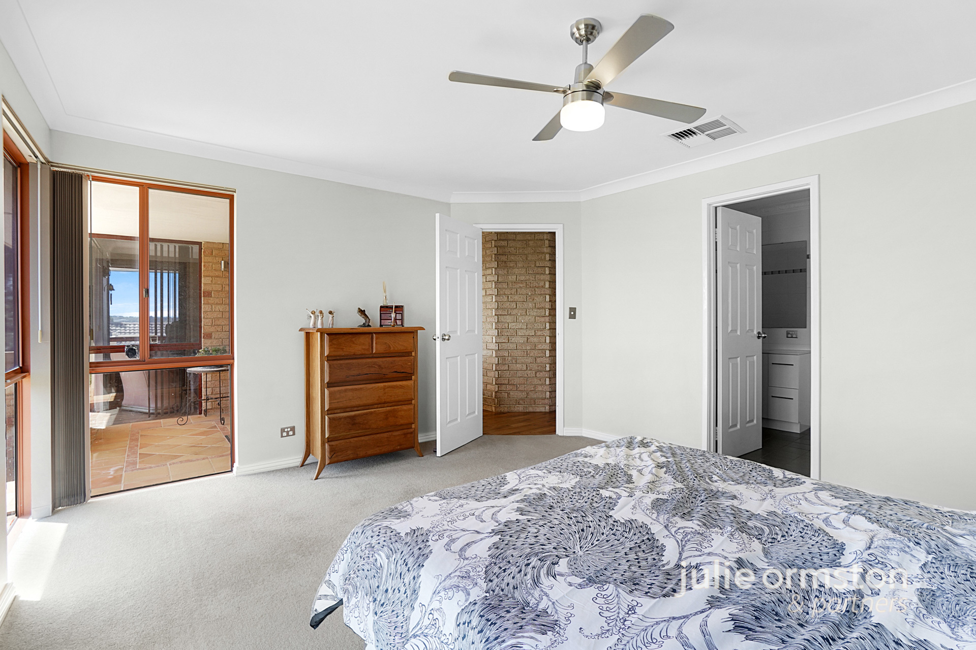 - Spacious, warm and inviting, the main bedroom enjoys beautiful views of Lake Joondalup and boasts a generous walk-in wardrobe, soft, carpeted flooring, and a ceiling fan. The luxurious ensuite bathroom completes this space, featuring a wet room design, with a large, open layout, with rainfall shower, modern vanity, toilet, heater lamp and floor to ceiling tiling.