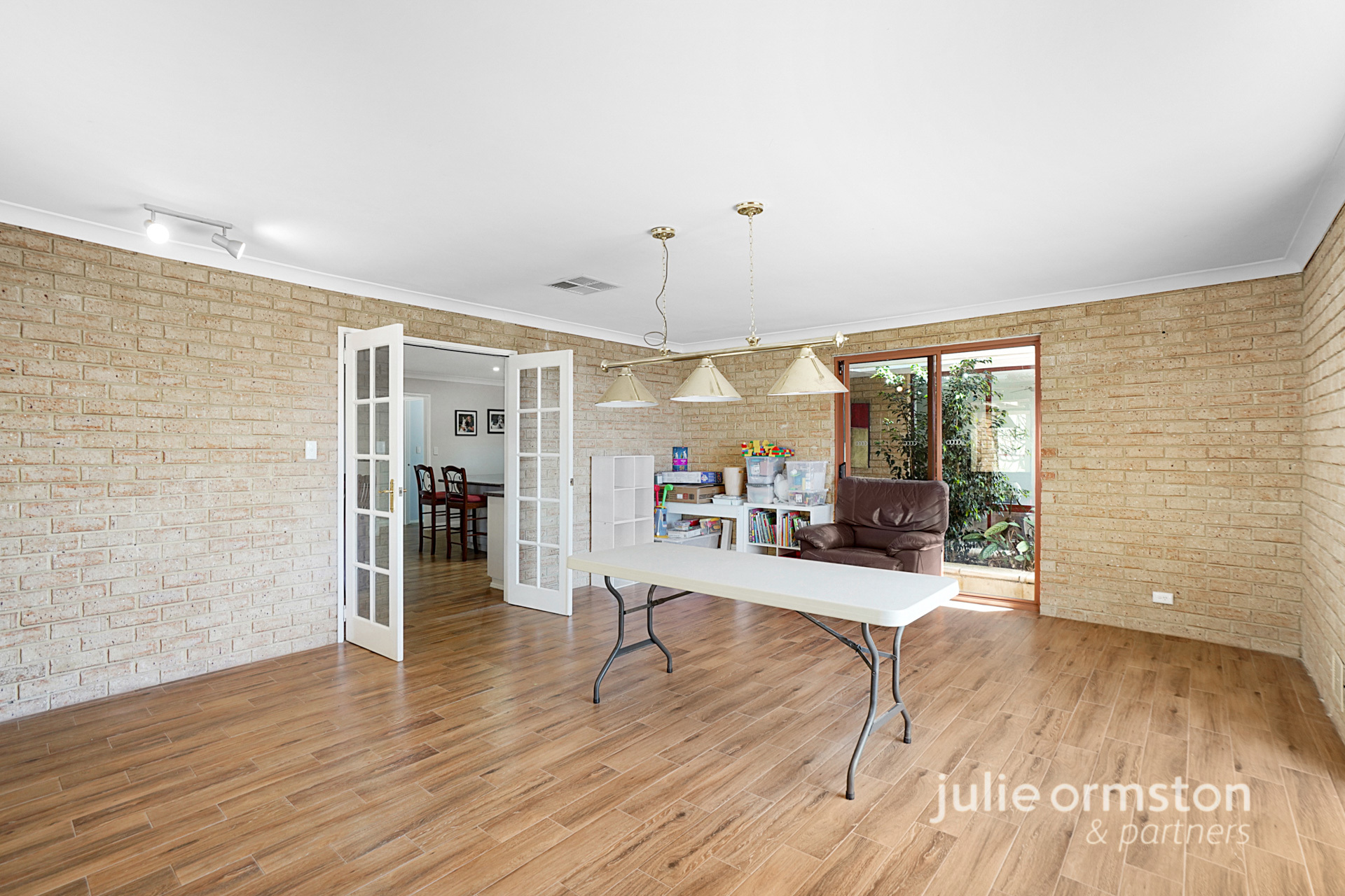 - French doors separate the games room from the casual living area, which comes setup ready for a pool table to be added with bar lighting already installed. Sliding door access to the backyard also makes this a great room when entertaining family and friends.