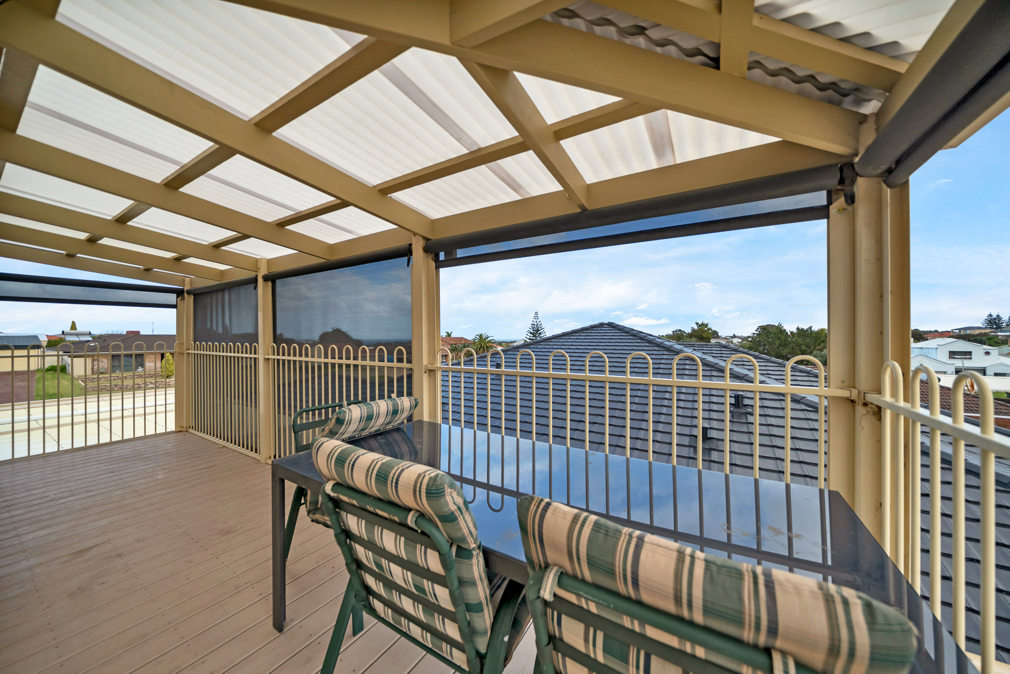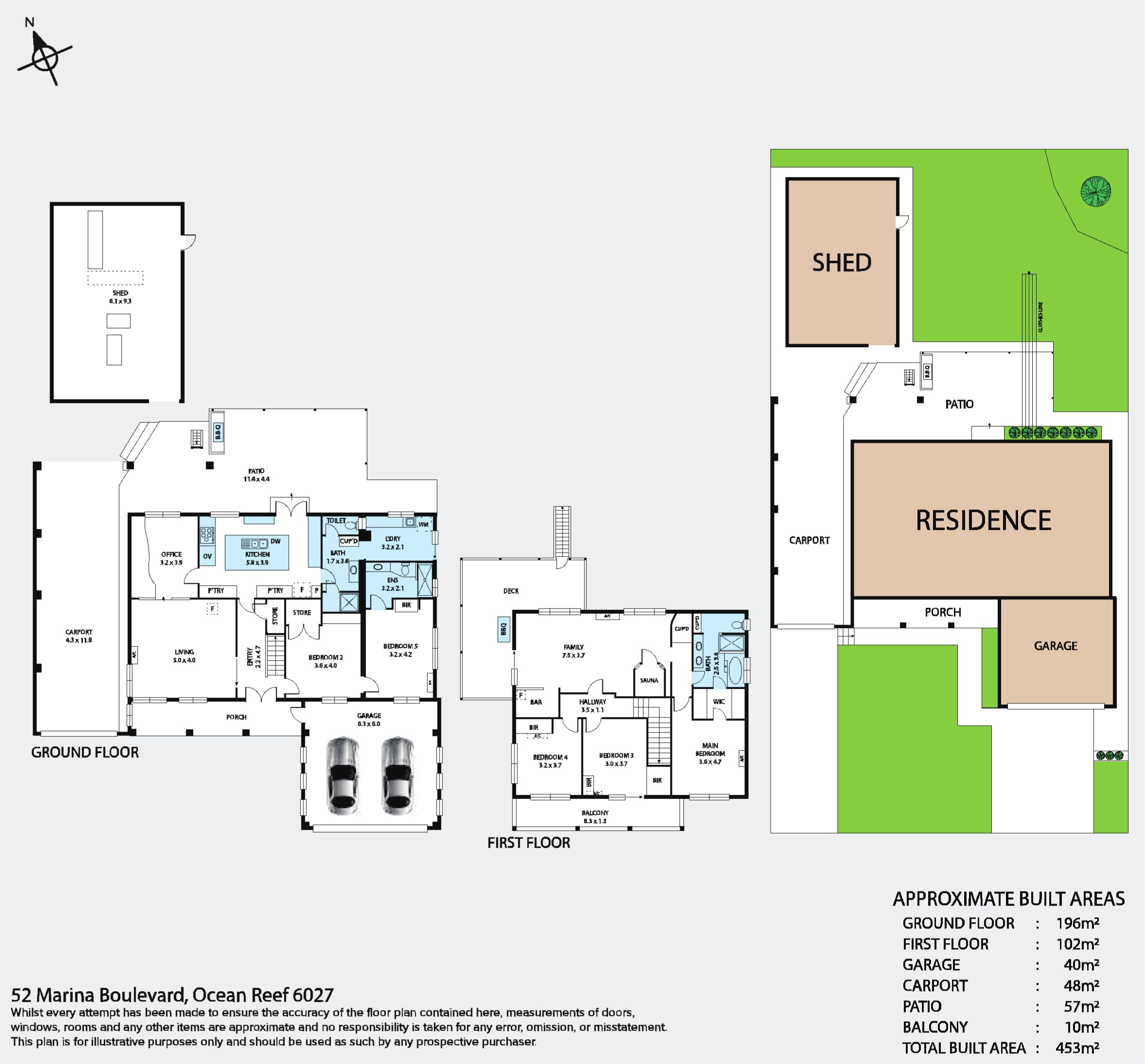 • Top-of-the-line appliances • Contemporary storage solutions Outdoor Features: • Large, lush front yard • Spacious back garden • Alfresco area with outdoor barbecue setup • Upstairs balcony with ocean views and weatherproof blinds Ample Parking and Storage: • Double garage with separate driveway • 3 phase power to shed • Tandem garage with separate driveway and high roofs for larger boats or caravans • Large rear shed suitable for a man cave, home office, or gym