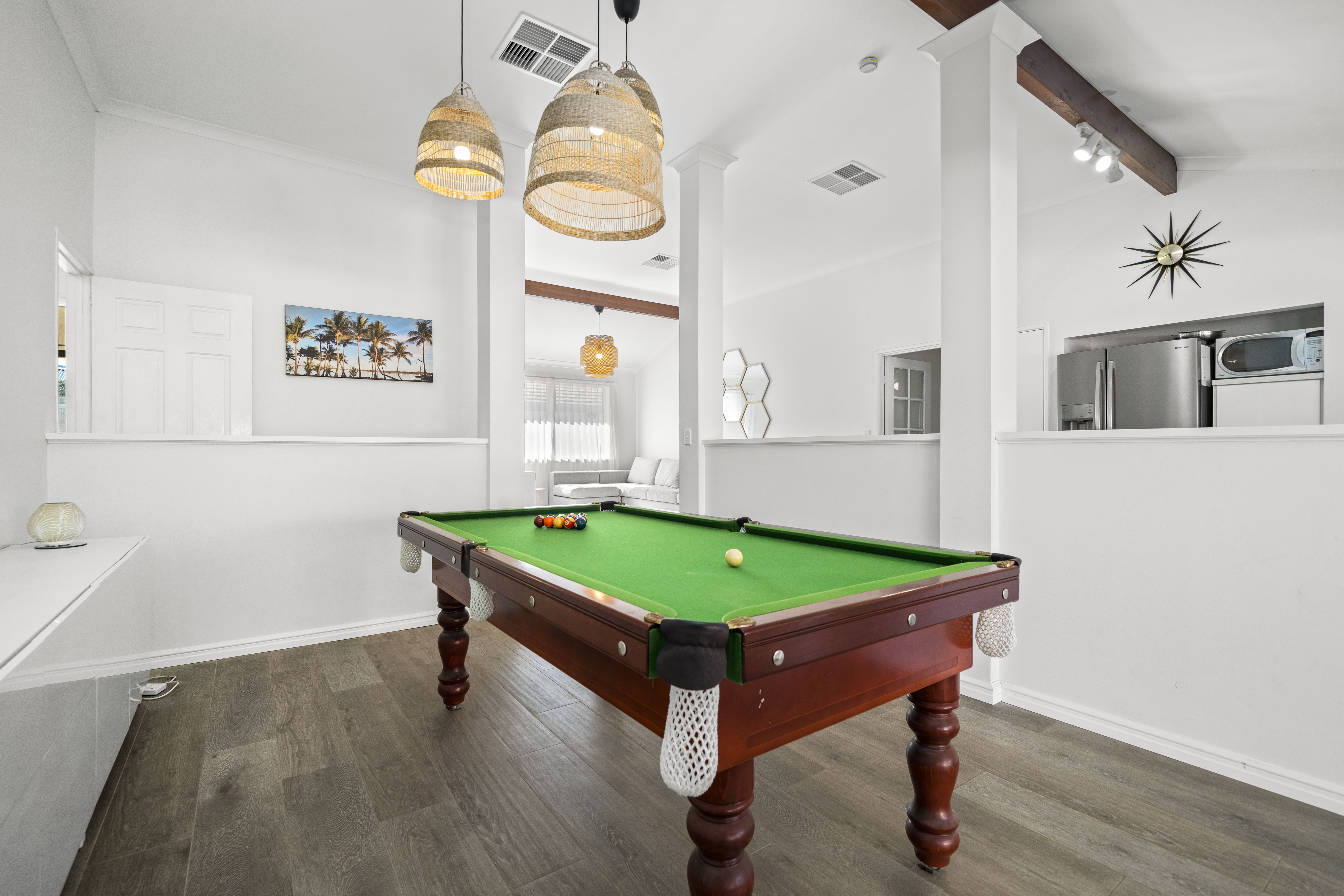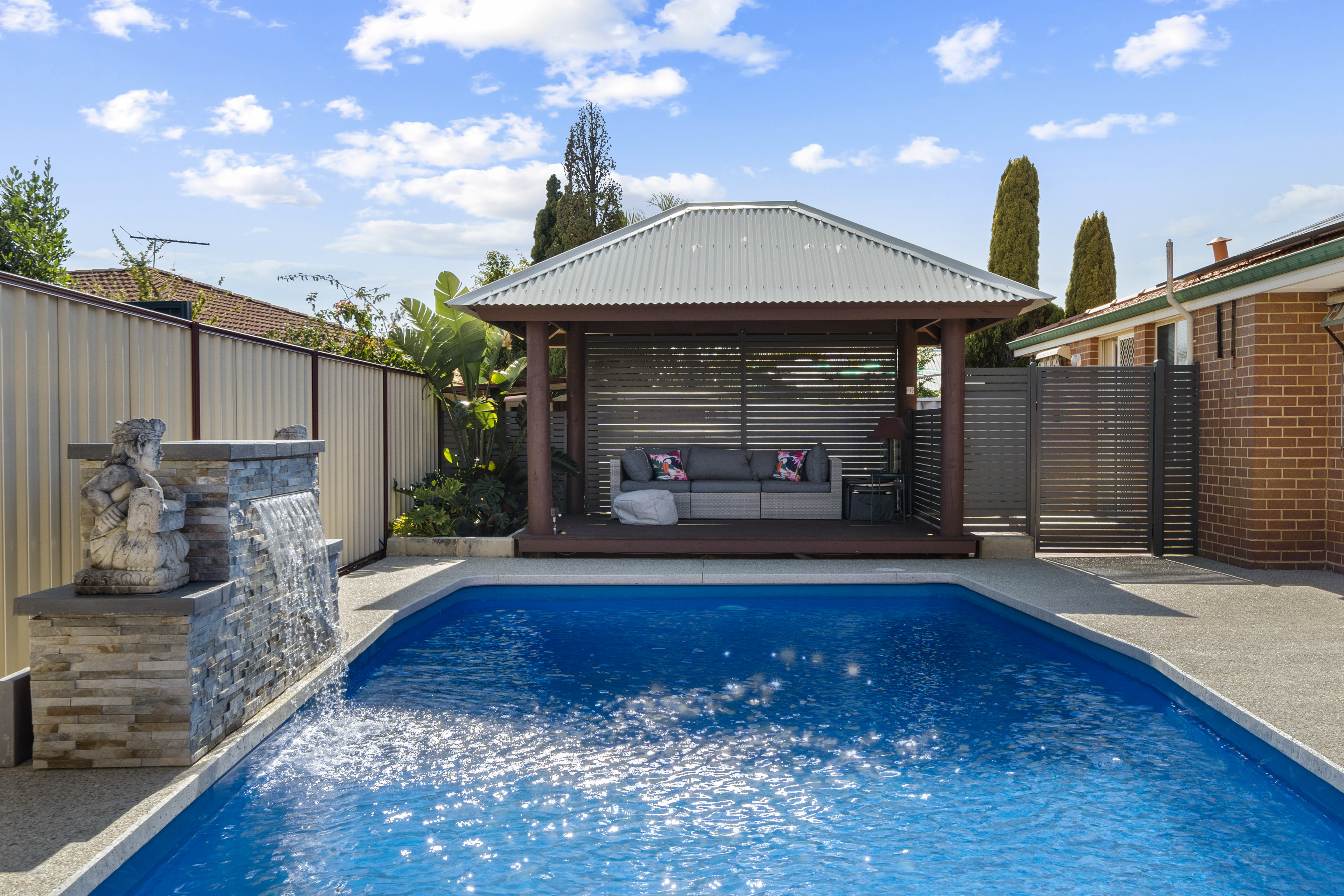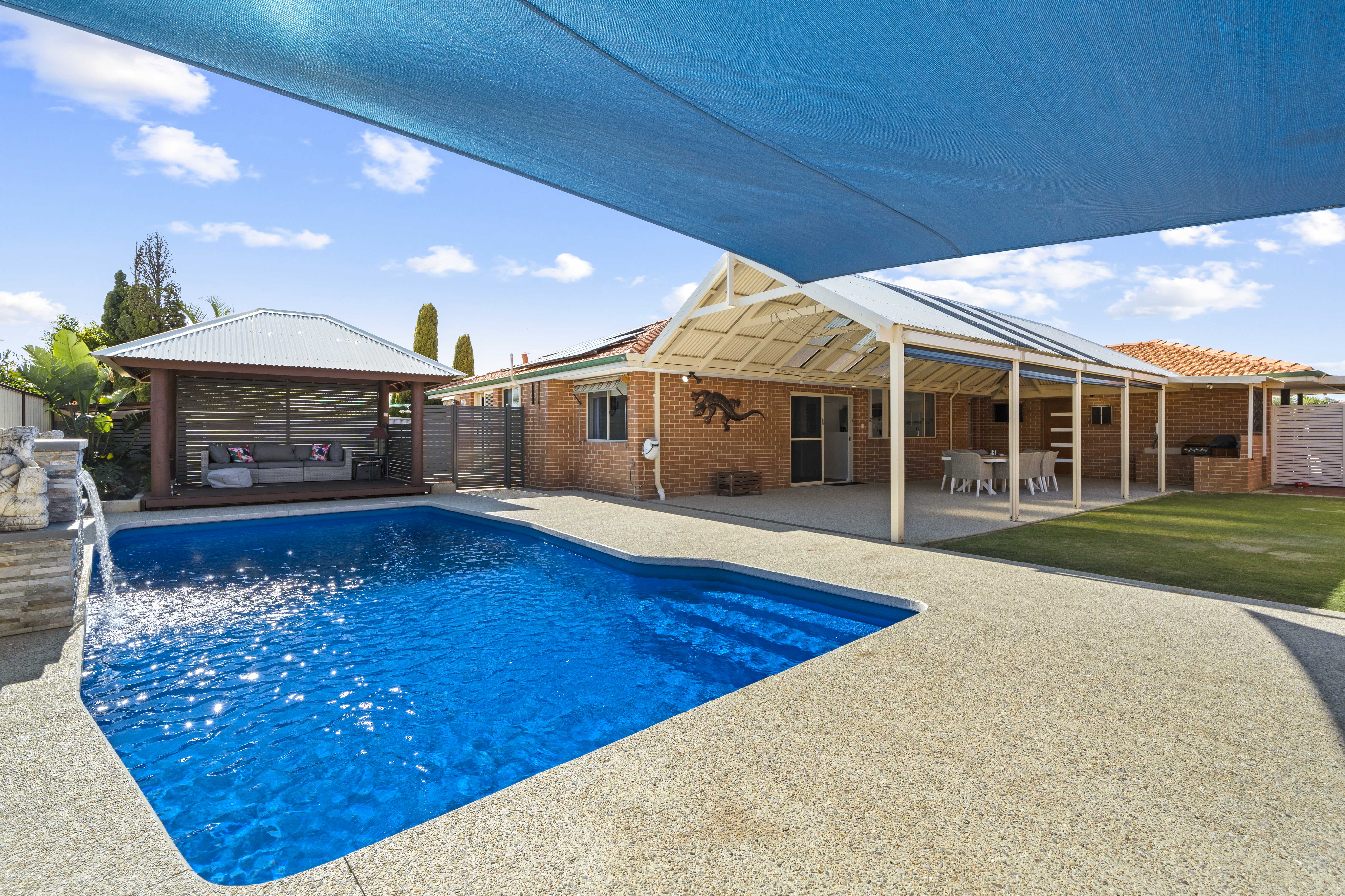 Outdoor Features: • Stunning pool surrounded by exposed aggregate concrete • Balinese-style cabana and separate pool house/gazebo for relaxation • Alfresco area with in-built BBQ, perfect for entertaining • Low-maintenance, landscaped backyard with fresh grass and garden beds • Reticulated irrigation system for easy garden care • 6.6kW solar system for energy-efficient living