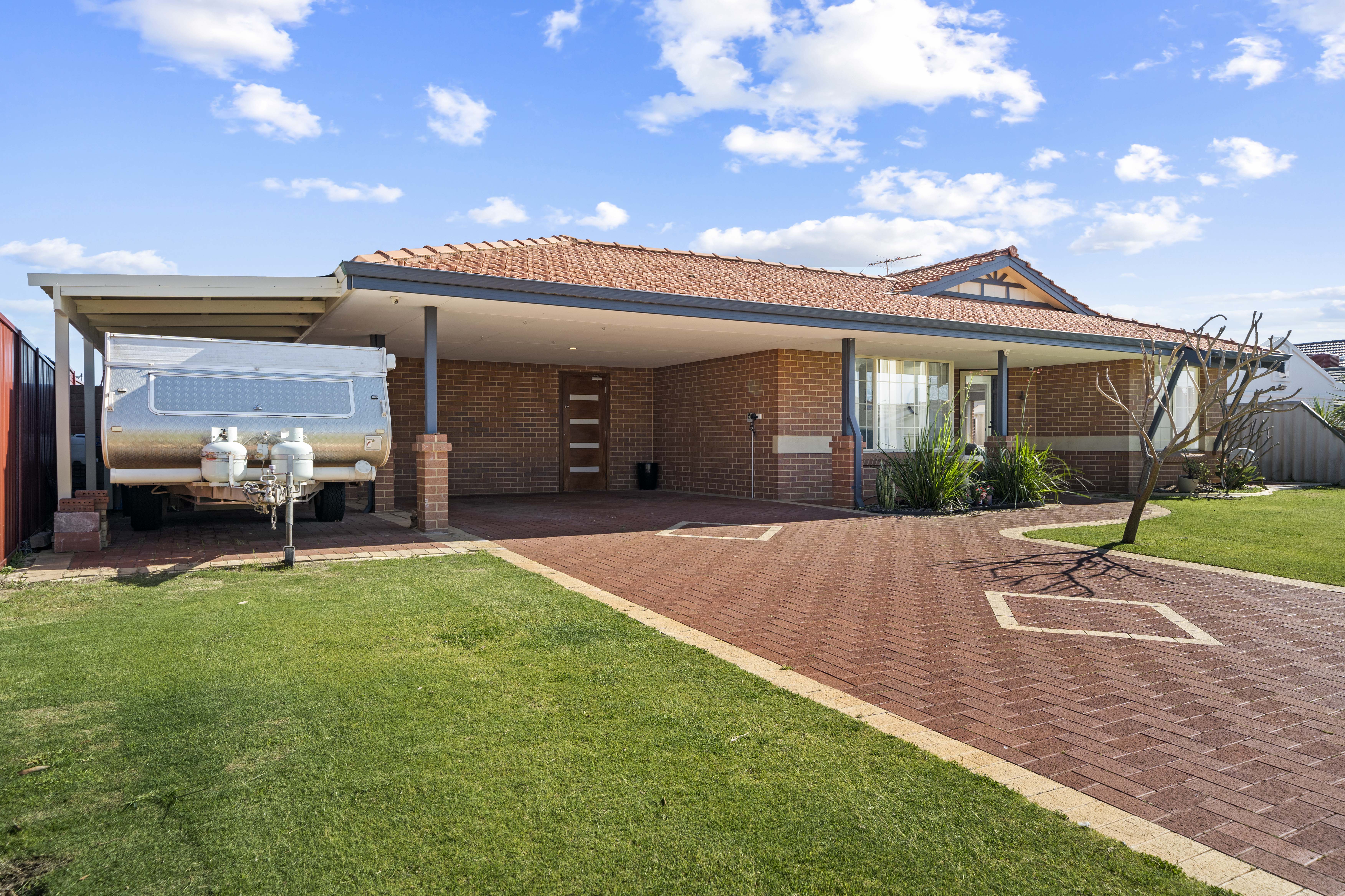 Outdoors, the low-maintenance front yard is beautifully landscaped with fresh grass and garden beds, all kept lush by a reticulated irrigation system. There's no shortage of parking with a double carport plus an additional space for a pop-top caravan or small boat, ideal for those with a love for adventure and the outdoors!