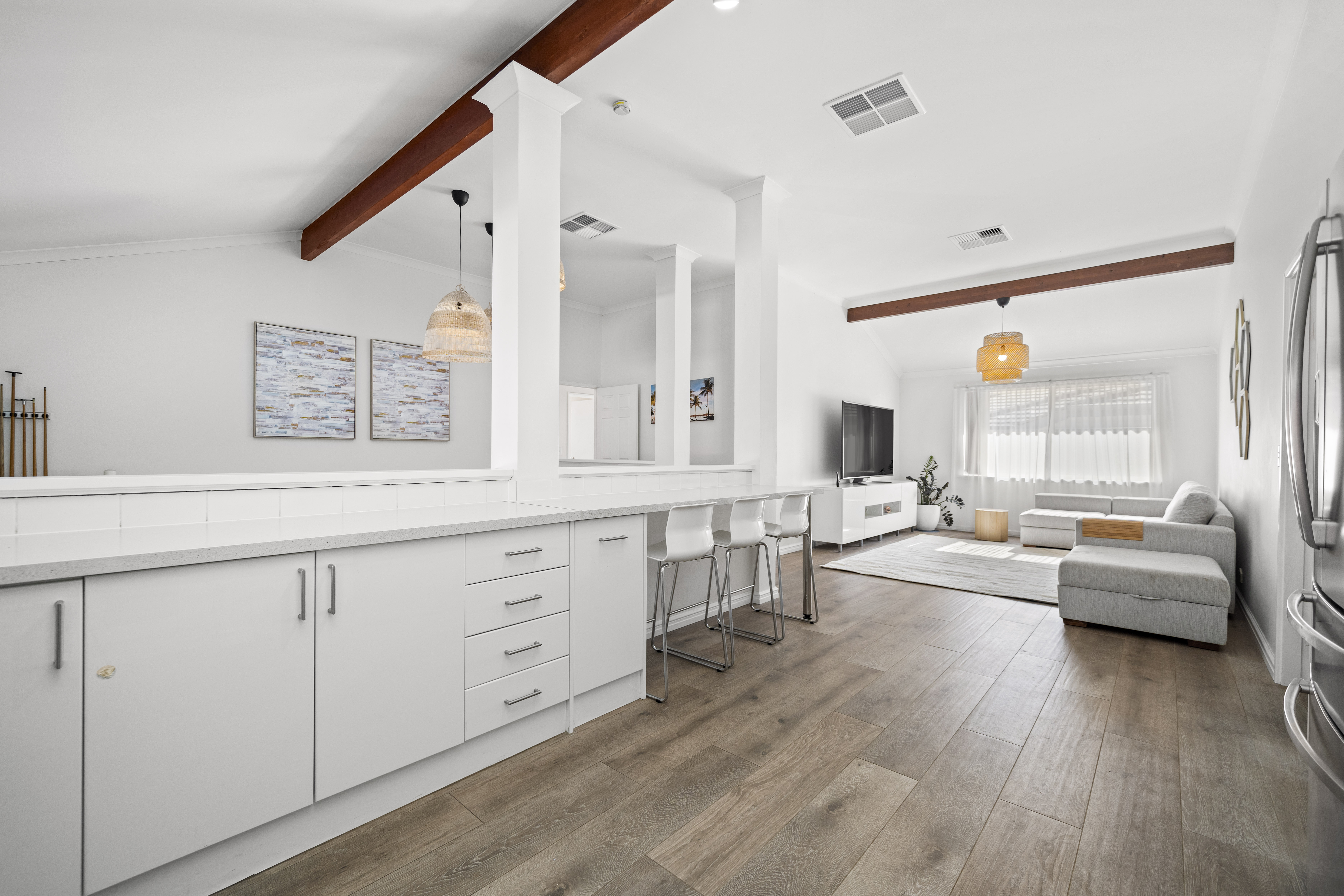 Spacious Living: • Four spacious bedrooms • Two well-appointed bathrooms • Multiple living areas, including a theatre room and dual lounge spaces • Reverse cycle air conditioning throughout for year-round comfort